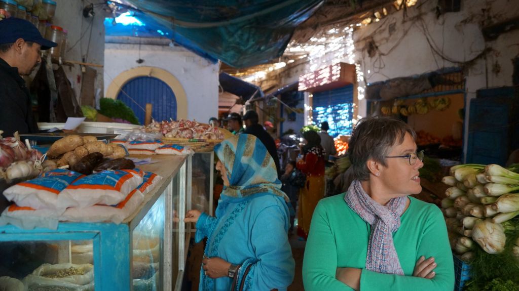 At the entrance to the souk, her friend Souirie orders 30 g of freshly ground cumin, 20 g of coriander and 50 g of turmeric. It’s for today’s cooking, they’ll come back tomorrow if necessary. What’s the point of buying too many spices all at once? They would risk fanning out, when it’s so simple to get supplies on a day-to-day basis. At the second newsagent’s on the left side of the souk, she tastes the tomatoes with her expert hands and then tastes the peas. There is no question of buying just anything either. This has nothing to do with the frantic pace at which Europeans shop in the shops. A little further on, she doesn’t forget to take 100g of vermicelli for the Moroccan soup in the evening. Then she sits for a few minutes on the bags of semolina to ask about so-and-so. The merchants are patient and also appreciate being able to exchange a few moments. In the meantime, our European is enjoying the small colourful stalls with all kinds of fruits and vegetables. A young greengrocer throws the brightly coloured plastic baskets, patched up countless times, from his counter to the smiling housewives lining up in front of his stall. The European doesn’t understand much about trade, but that doesn’t matter; time passes differently in the Medina. She knows that the meal will be good, that she will find the taste of the oranges of her childhood, that there will be seeds in the oranges and that the pods of the peas will be well garnished.