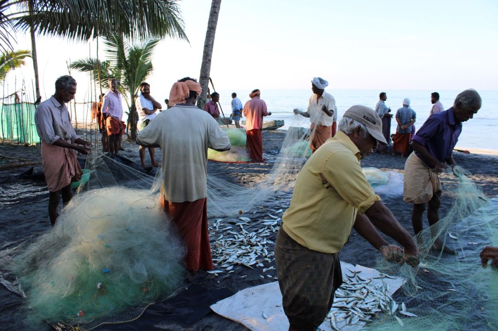 Posso anche immaginarvi nelle Backwaters a leggere l’articolo con i pescatori, la mattina presto, sulla spiaggia di Perumpally, alla fine dell’asta del pesce.