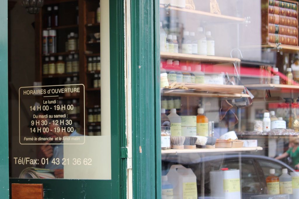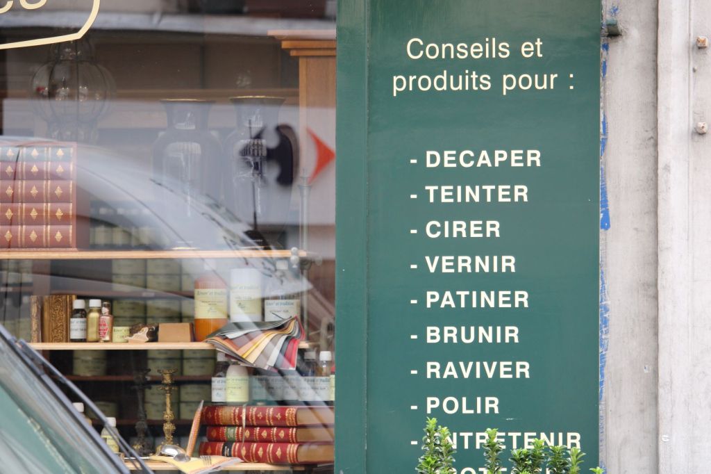 There is « Rénove et Tradition », the furniture restorer, where it smells like beeswax and the life of another century.