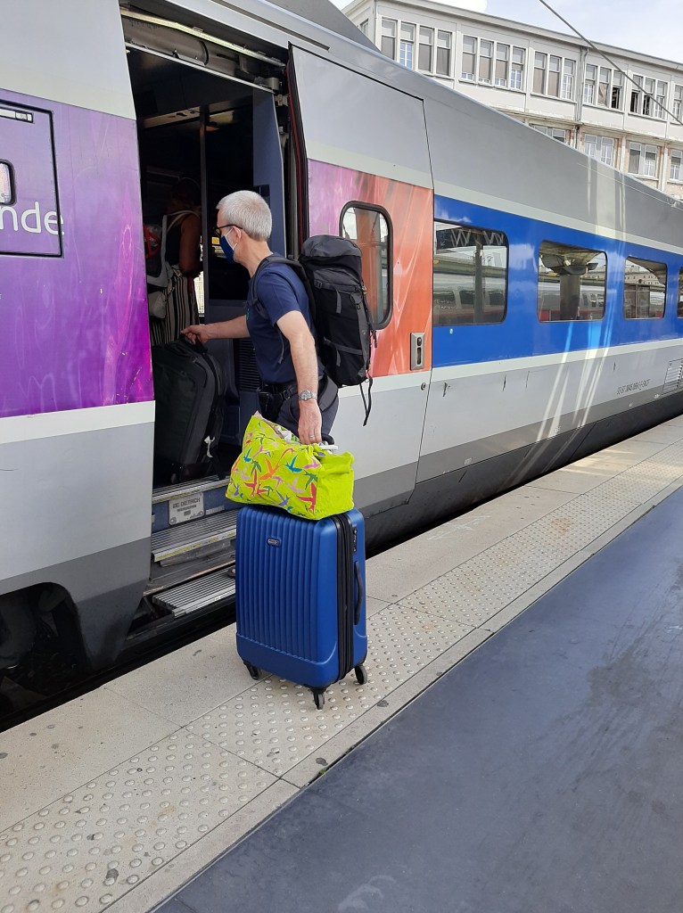 St Jacques metro station, a small metro station, on Boulevard St Jacques, which over the years has preserved its authenticity with its stone walls and which benefits from an opening to the outside towards Nation. From there, the metro becomes aerial and takes its ease through the city. Our travellers descend four by four the steps leading to the platform in the direction of Nation. The subway arrives, the atmosphere is at a distance, even if it is challenging in a crowded subway train. Getting off at Bercy, they then walk to the Gare de Lyon, via the allée de Bercy. On one side, the large buildings of the Ministry of Finance and on the other, those who are without finance and homeless. In the underground, they are seized, despite their masks, by a strong smell of urine. They find it difficult to breathe. They enter the station and head towards Hall 2 as indicated on the notice boards. Platform 21, once they have passed the boarding gates, it is time to board the Transalpino. So it is in car 8 of the Parigi, Lione, Torino, Milano that the journey begins.