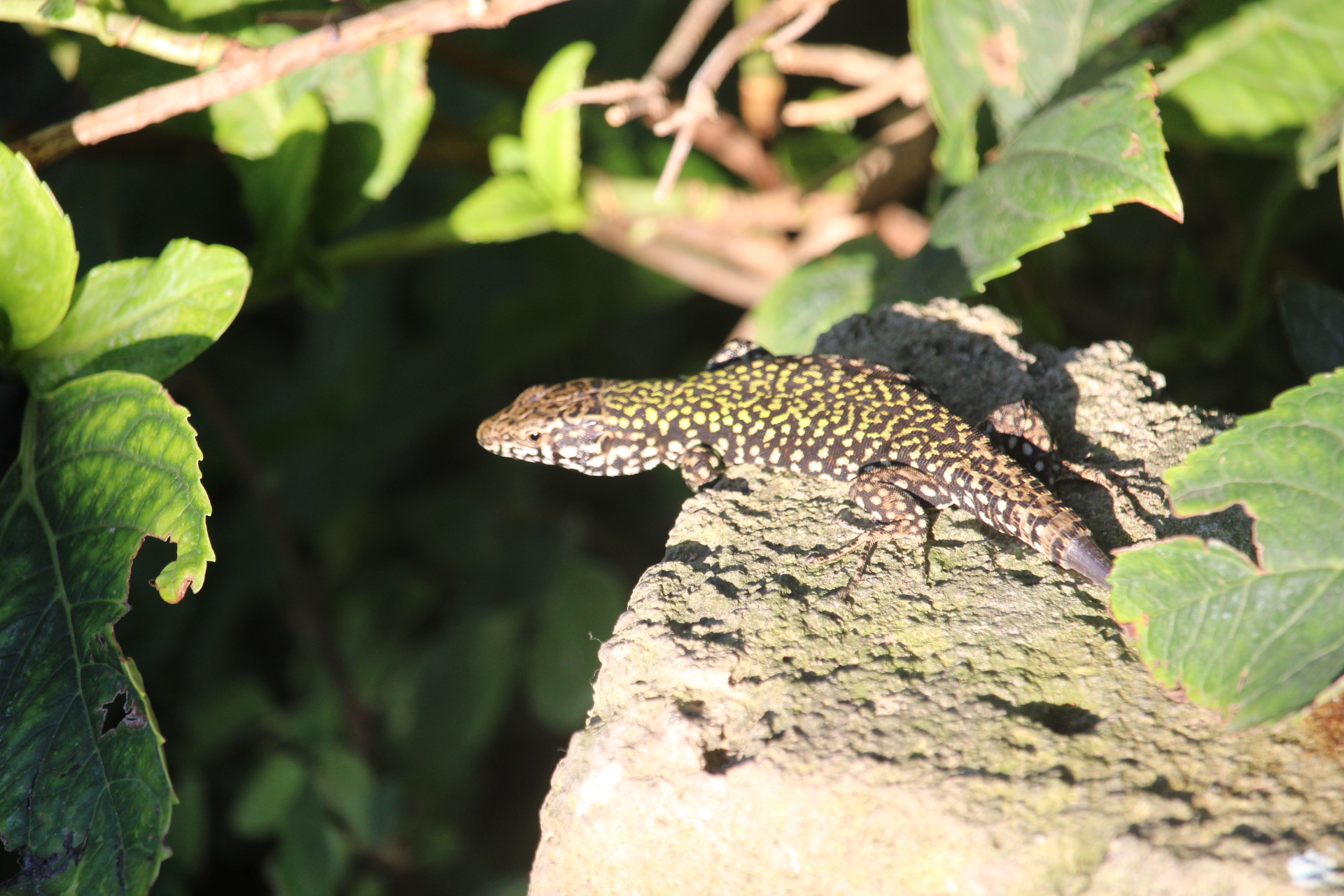 Una lucertola si crogiola al sole con sicurezza. Sa che le fate sono amiche degli animali.
