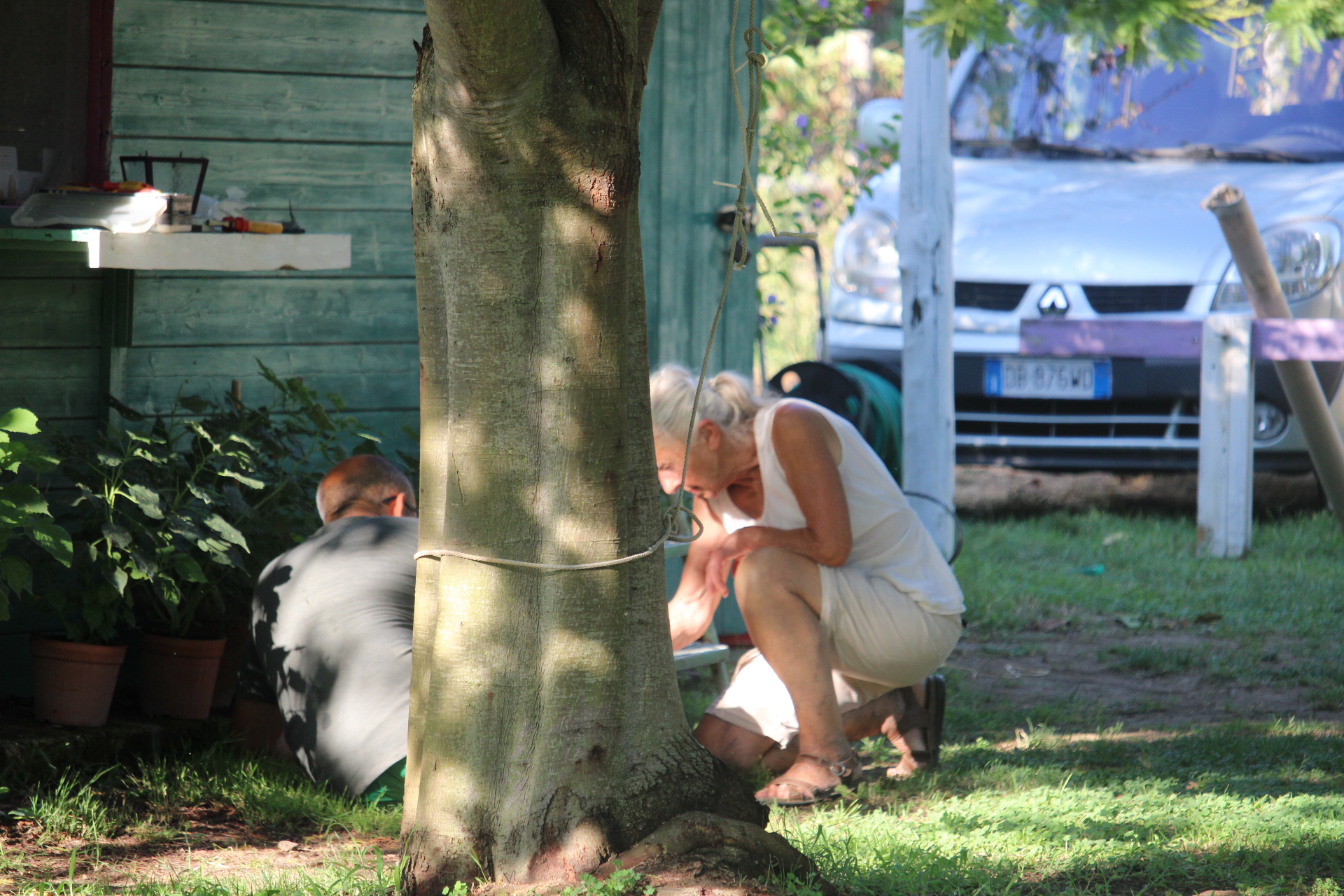 On the right, a few chairs placed in the shade of the fig tree for visitors to take their time for the chat. We are in Italy and these times of exchange still punctuate daily life. It is here that information on the future of the lake is exchanged. It is here that consumers and travellers passing through are made aware.