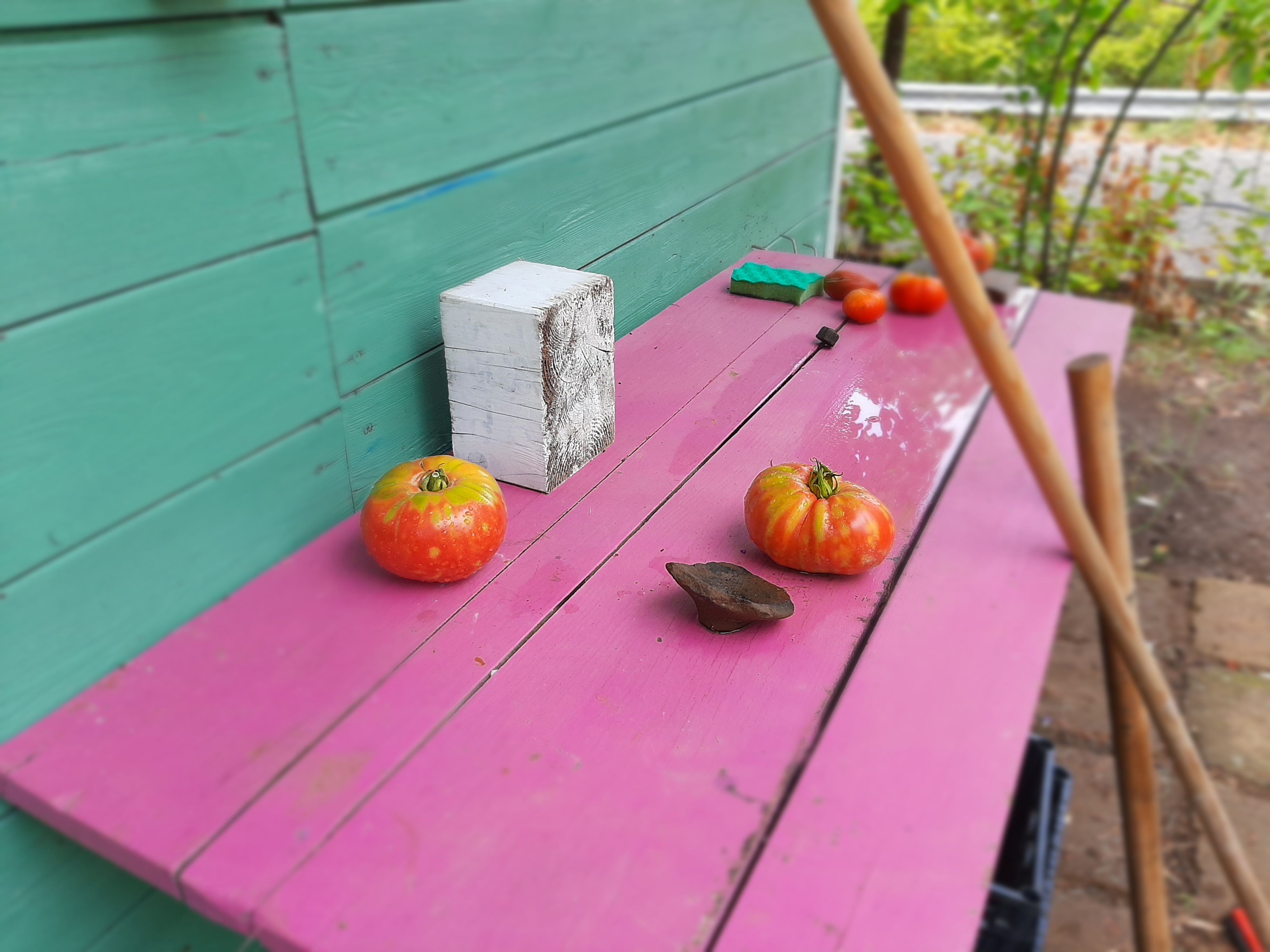 In this little corner, it smells like a freshly picked tomato. Basil, barely touched, also offers you a whole range of smells that are good to breathe.