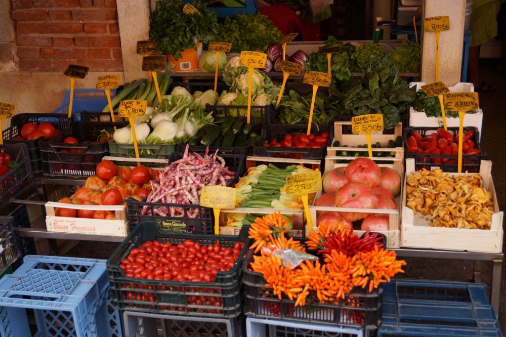 Wander between the stalls and let yourself be overwhelmed by the good smells and bright colours. Imagine the thousand recipes for pasta, pizza, primi piatti, secondi, risotto, tramezzini, cicetti to be made with all these superb sun vegetables. Let your eyes wander from the delicate courgette flowers to the round pomodori, from the magnificent finocchi with a plump white belly to the marooned borlotti beans to be shelled. A dreamy front for the taste buds and the eyes.