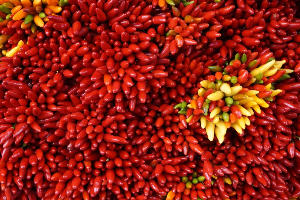 Getting excited by the stalls of sun-drenched chilli peppers and thinking that colours are re-enchanting the world.