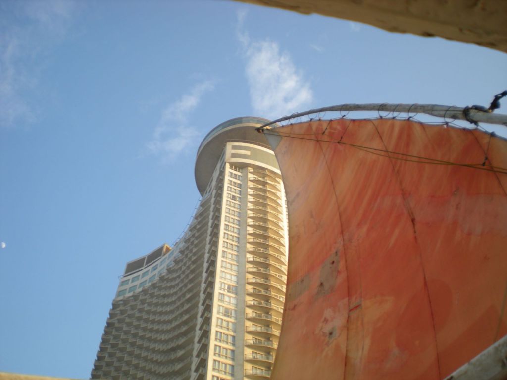 Feeling very small as the trapezoidal sail of the felucca unfolds. So majestic, it seems to be playing with the big hotels that will remain forever on the bank as it sails down the Nile.