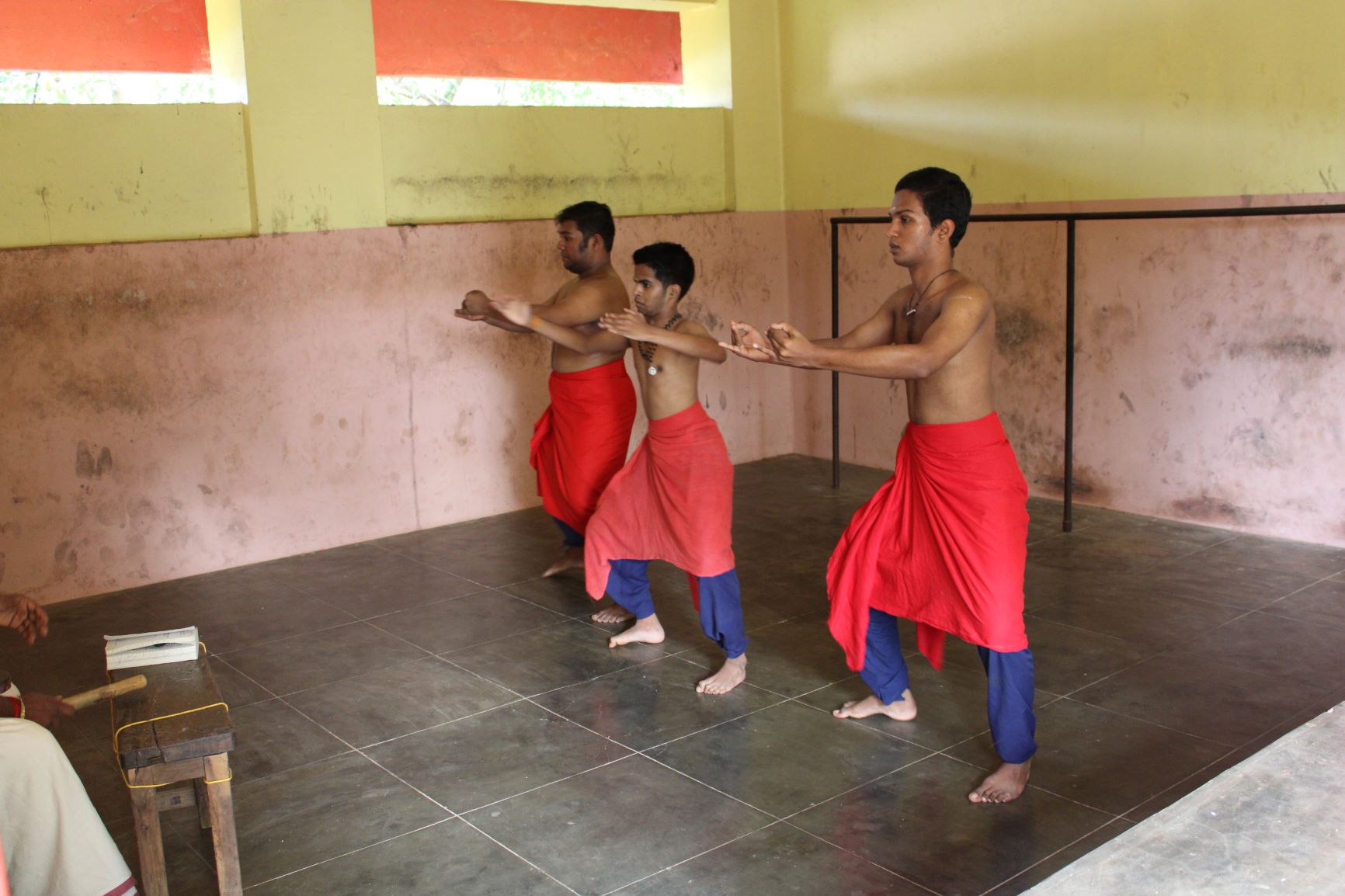 Surrender to the fascination of the rigour and tenacity of the teenagers in the Chenda class, the two-skinned instrument that accompanies the Kathakali and the Koodiyattam. Let yourself be gradually carried away by the sustained rhythm of the percussion until you lose all notion of time.