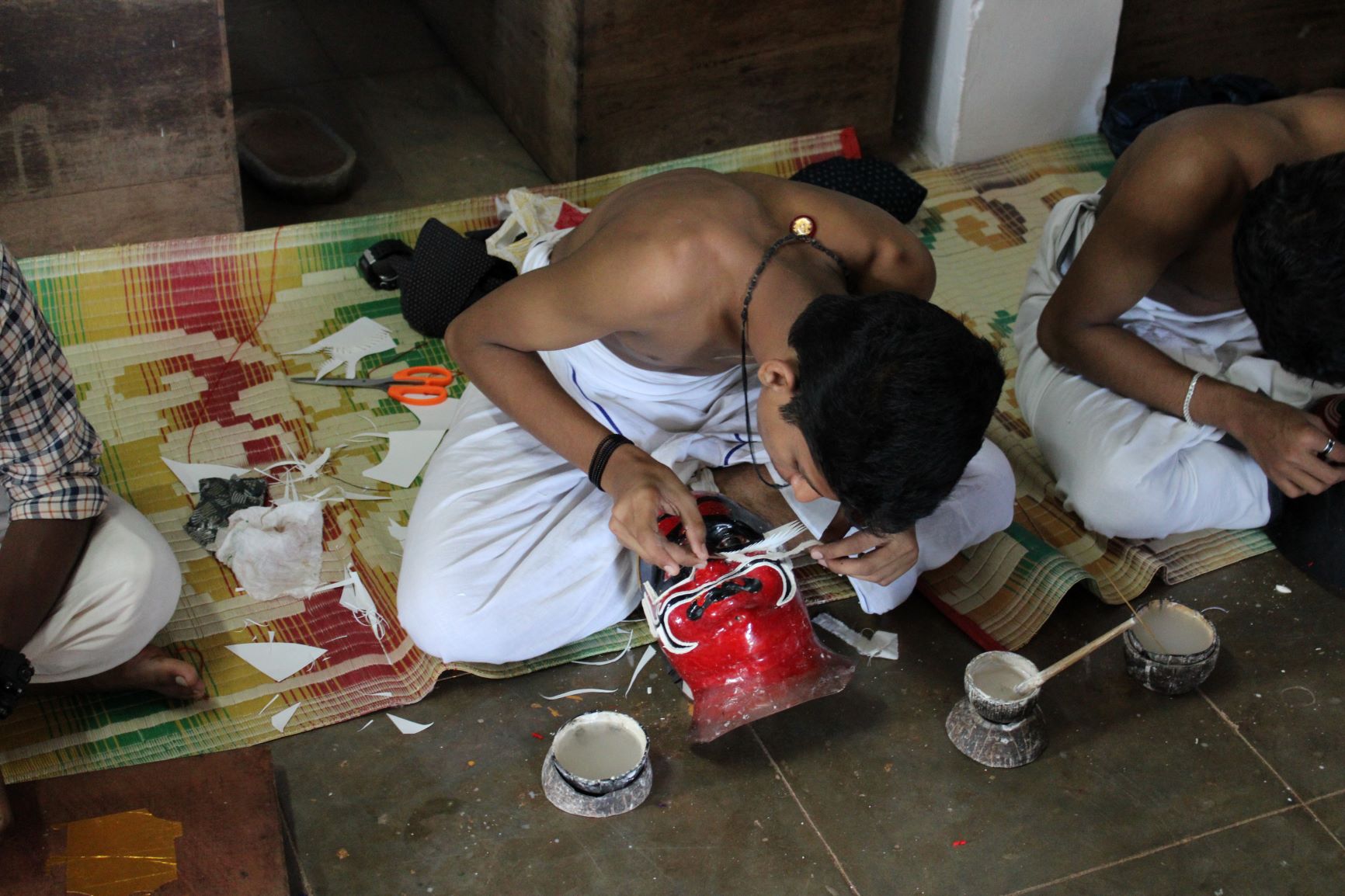 Then discover the patience with which students learn the art of make-up. Never forget that in Kathakali, the make-up session can last about 3 to 4 hours.