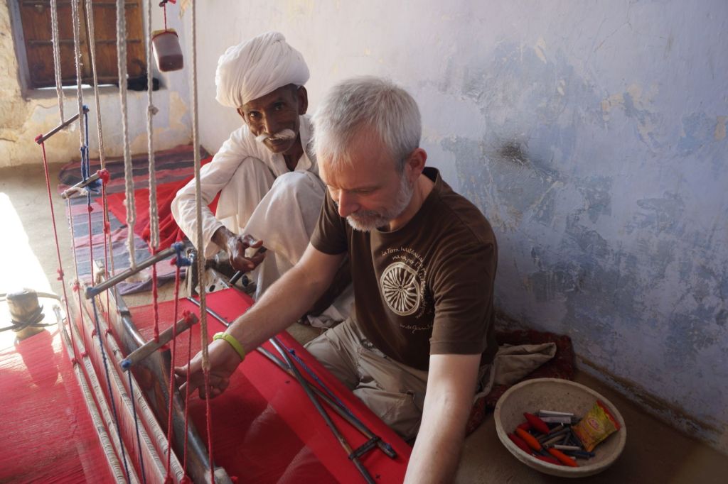 Au fin fond du désert du Thar, dans un petit village du Shekawati, passer une matinée extraordinaire en compagnie d’un fabuleux artisan tisserand.