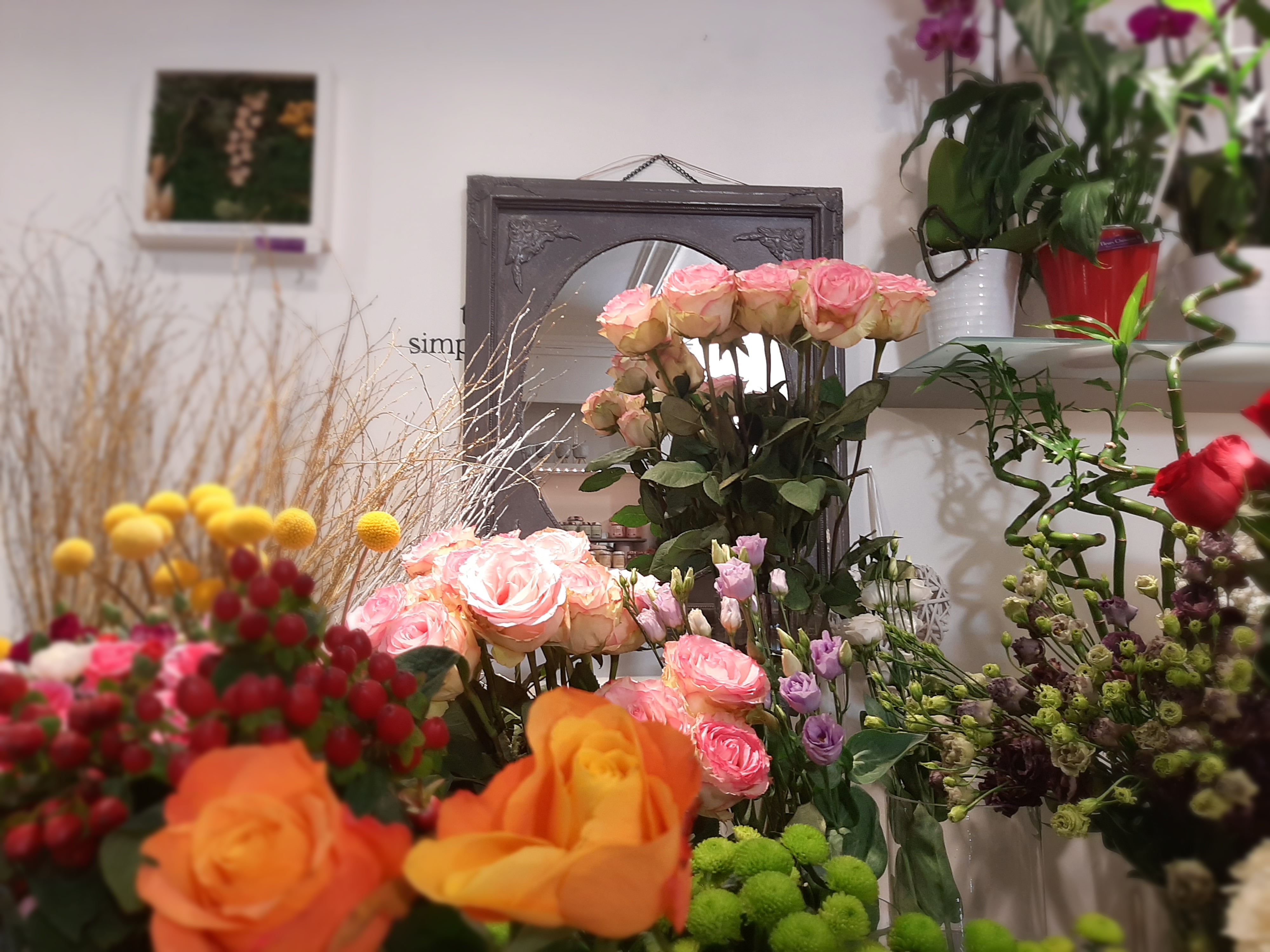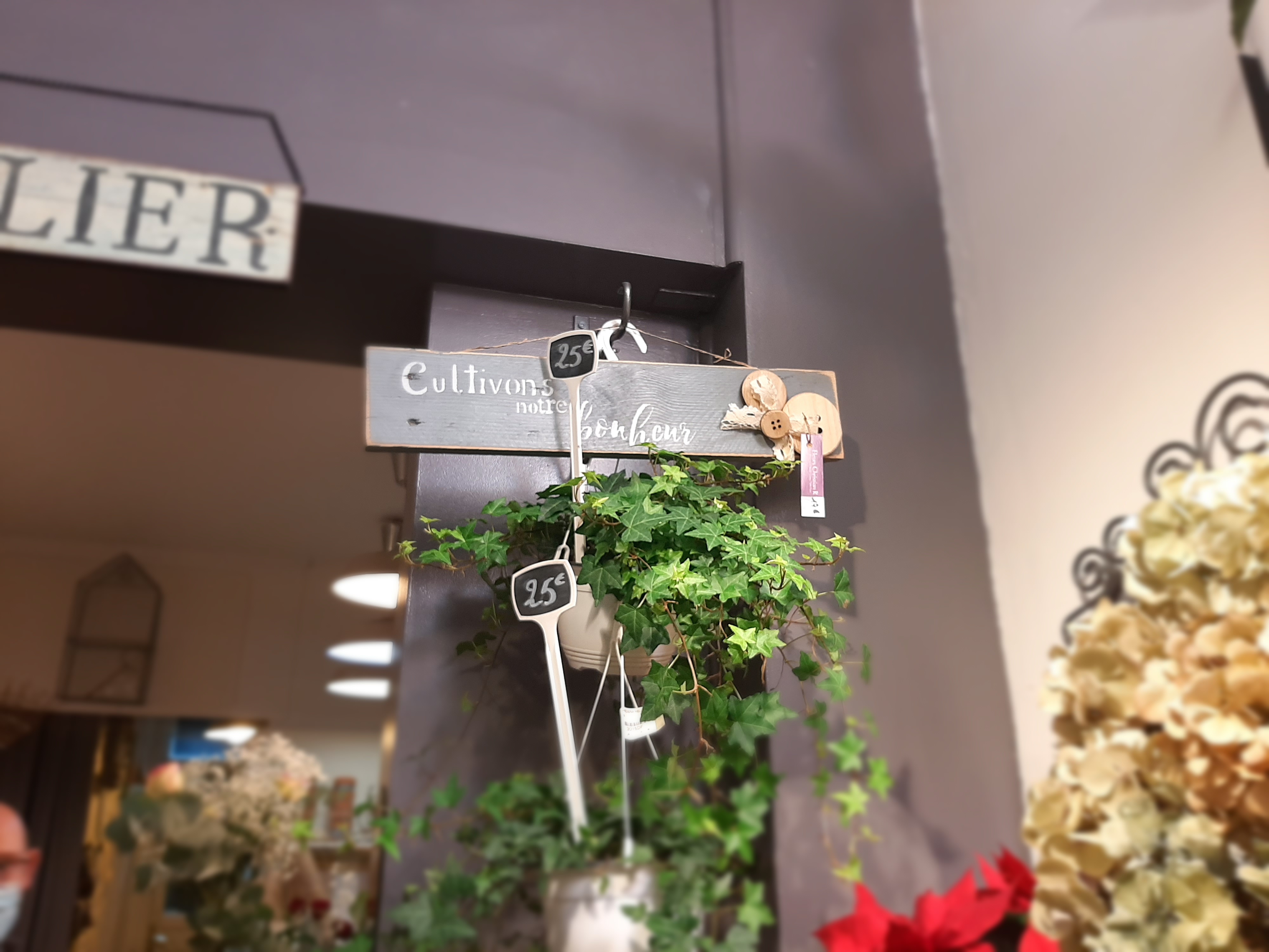 Unless one decides to let oneself be tempted by the little ivy that runs along the workshop, with its little sign that invites us to cultivate happiness, just like the artist who is busy making what will be for us the most beautiful of bouquets.