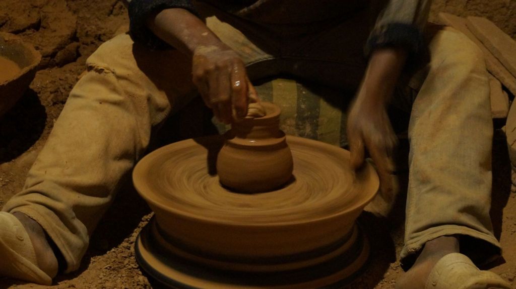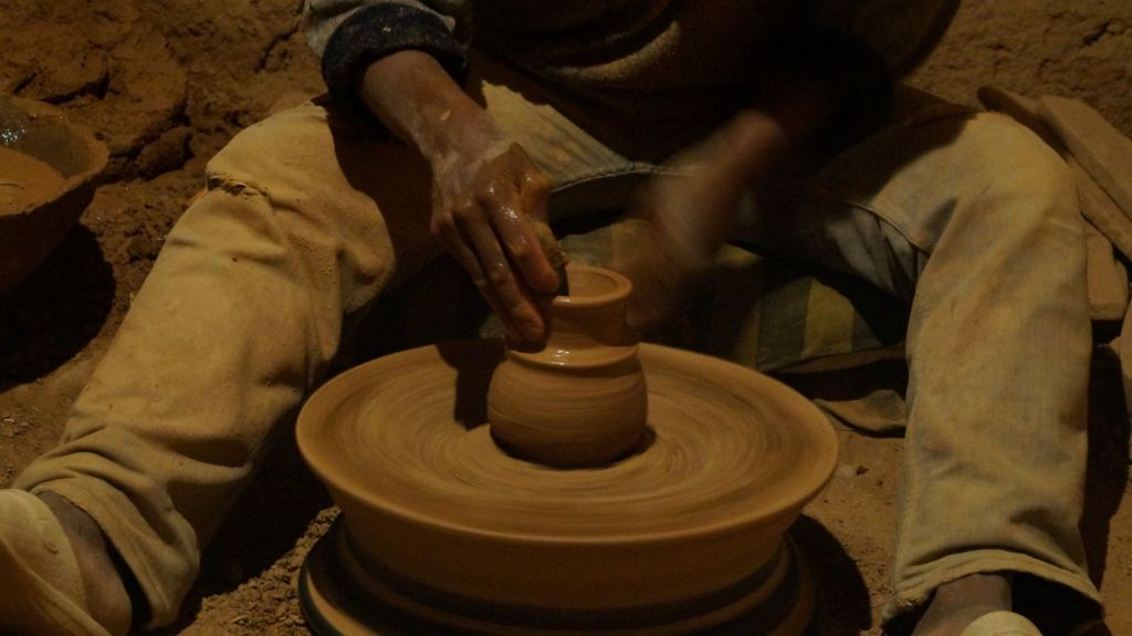 Watching Mohamed the potter who strikes the earth collected this afternoon in the desert.