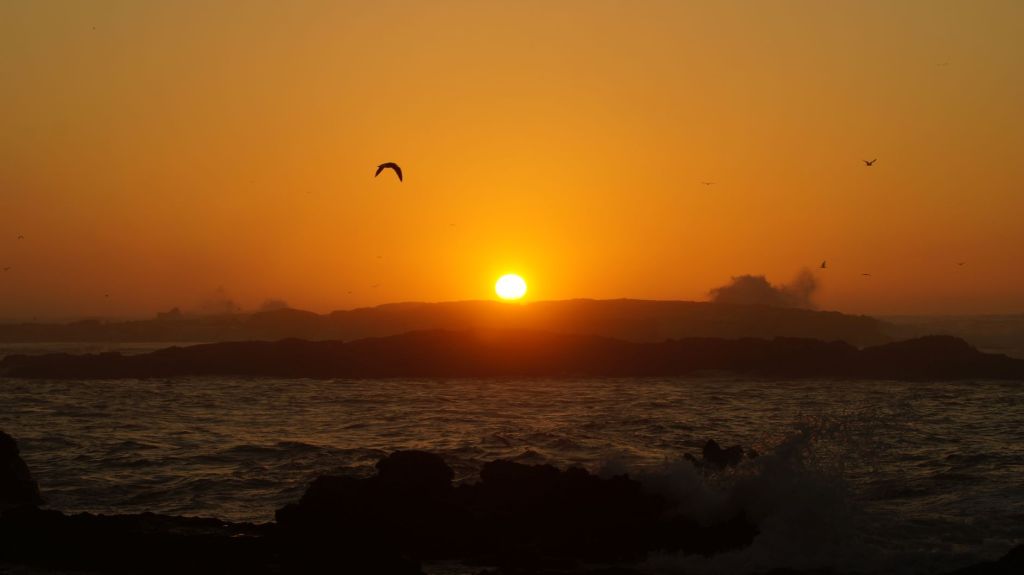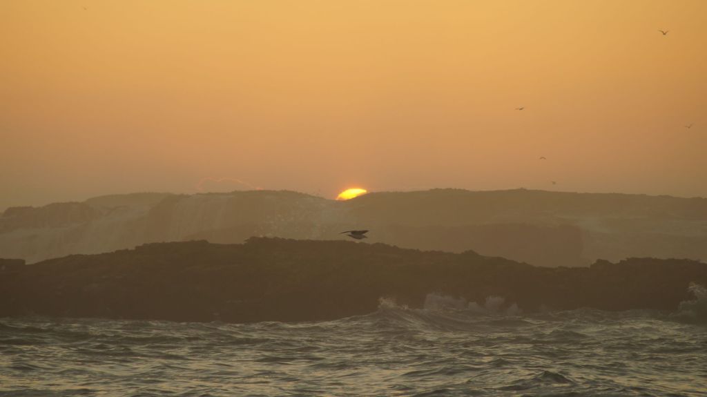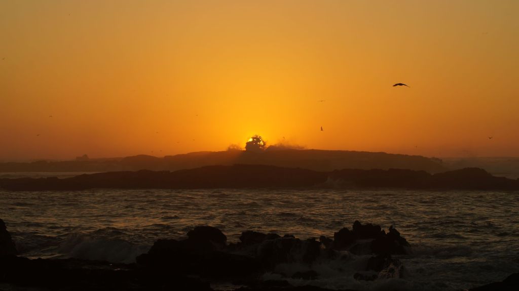 Distinguish a bird that passes in front of the sun to be admired. Guessing that the spectacle of the high tides against the backdrop of the setting sun is worth the trip.