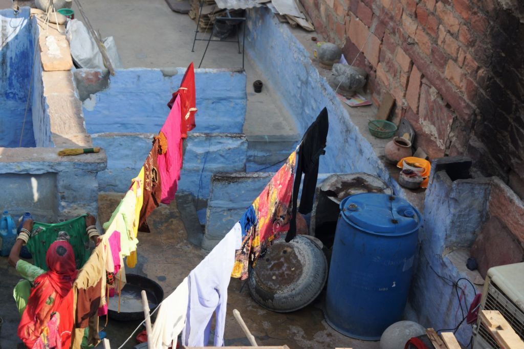 …a woman hanging out her laundry…pottery…a basket…a saffron-coloured cloth…