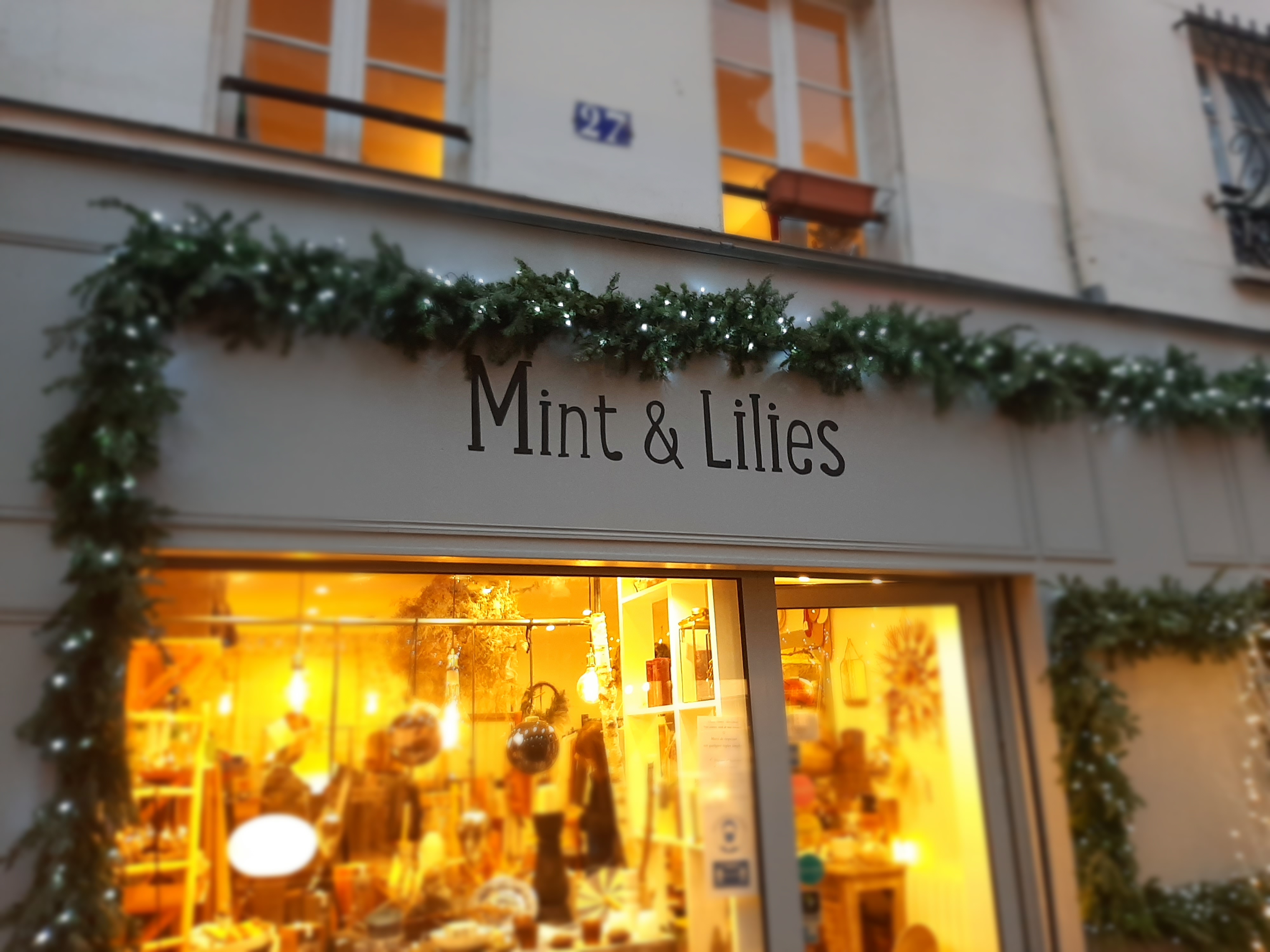 A little further down the street, dreaming of the gifts to be given, stopping in front of the façade of Mint et Lilies.