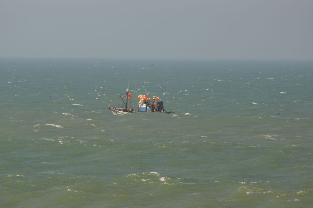 …et découvrir un chalutier venant du nord et qui semble s’enfoncer dans les eaux.