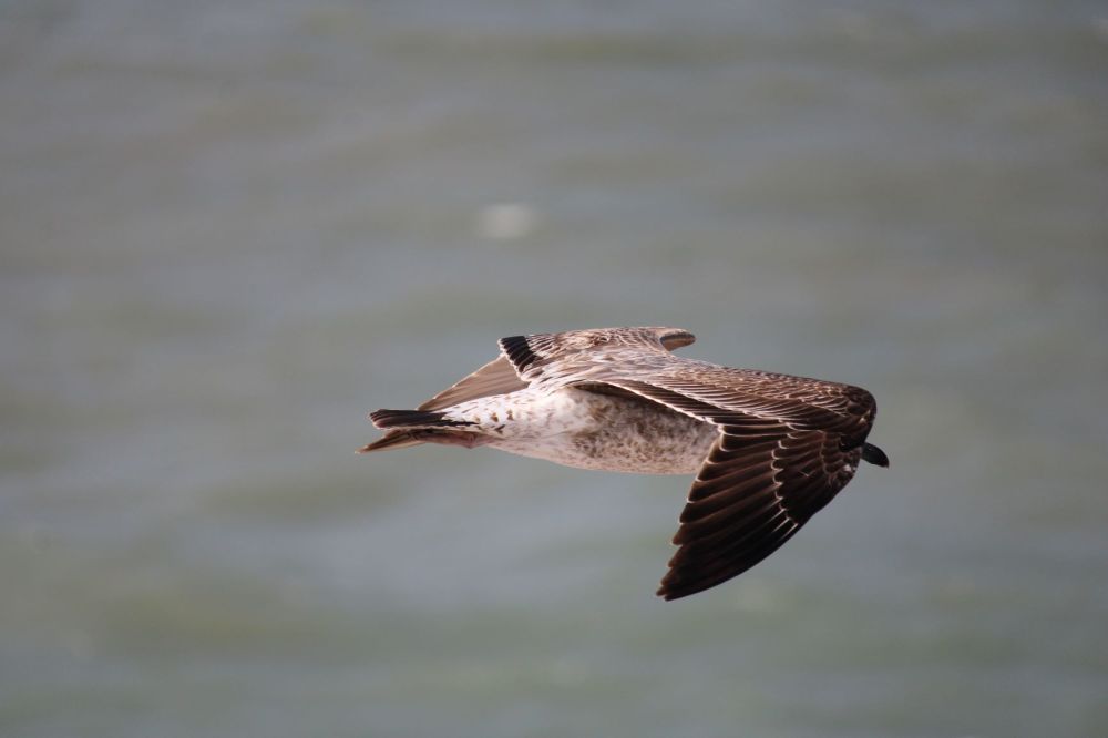 Admirer la chorégraphie des mouettes et des goélands sur fond de mer en dégradé de couleurs.