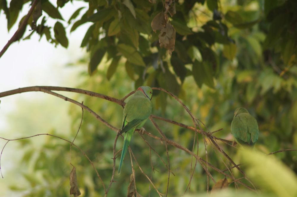 …puis deux perruches qui se fondent dans le paysage.