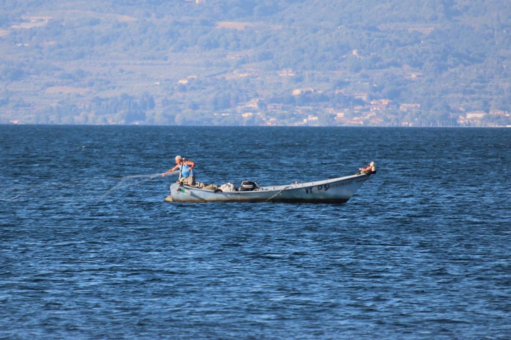 Emilio et Léandro sont tous les deux pêcheurs, fils et petit-fils de pêcheurs sur le lac de Bolsena. Dans le petit matin bleu ou dans la pénombre de la nuit tombante, on peut les admirer en train de tendre ou de relever leurs filets.