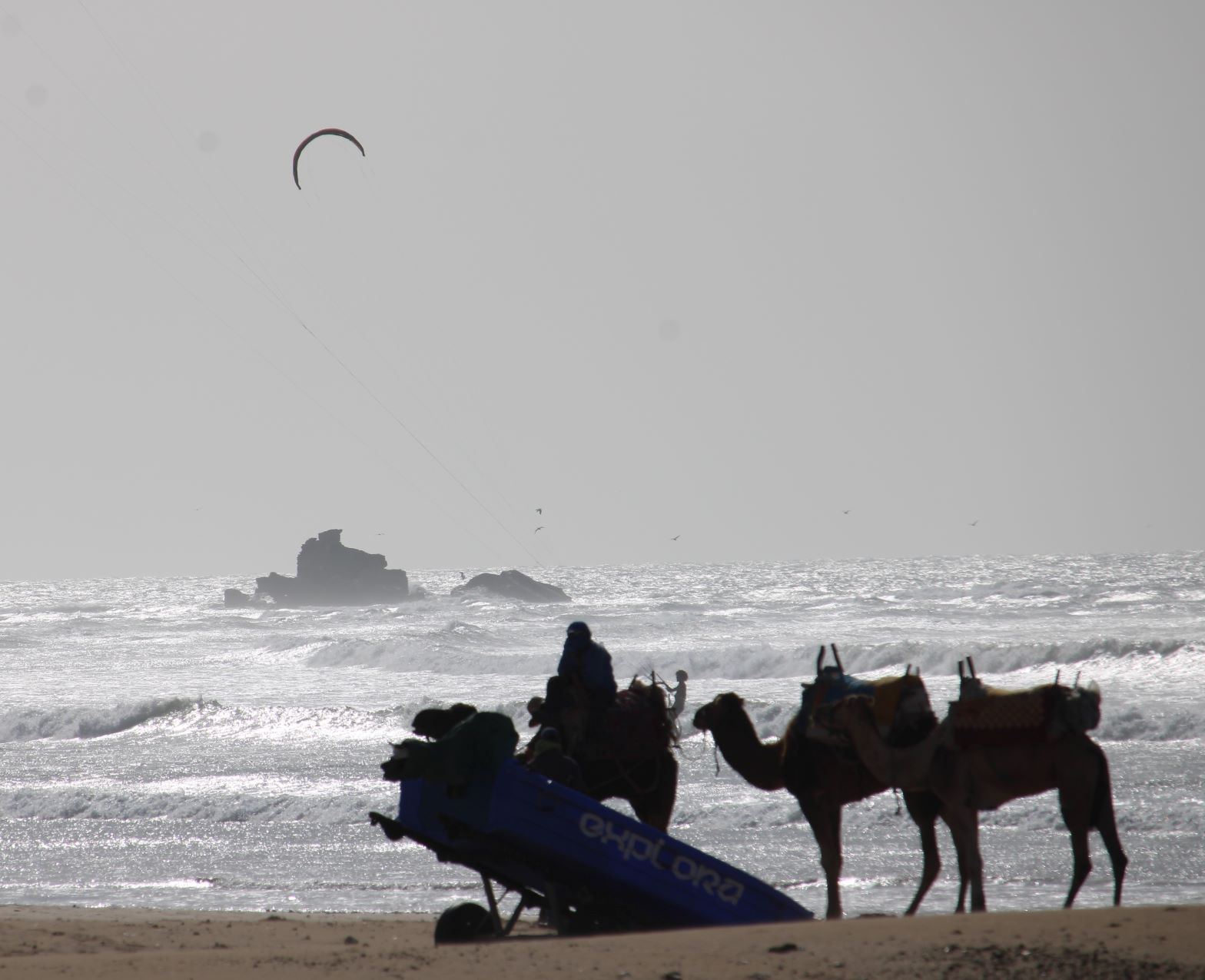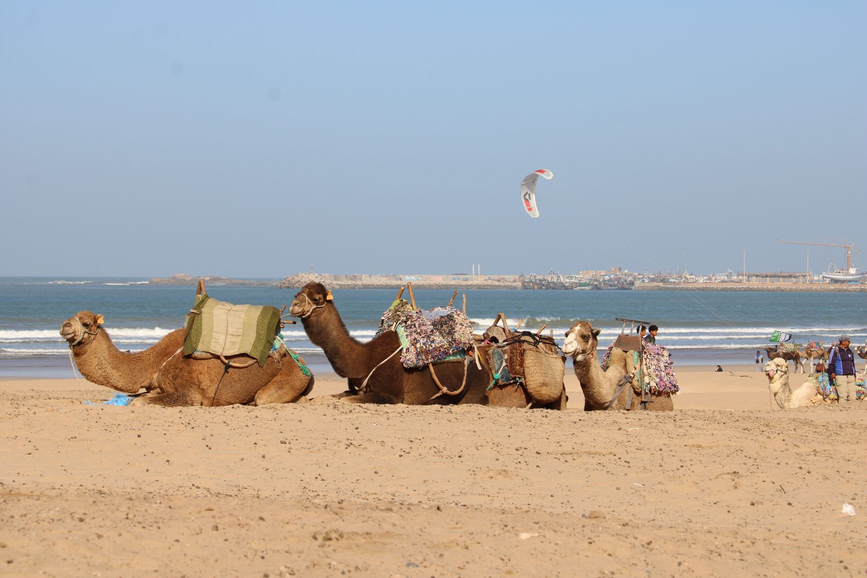 A quelques mètres de là, voir une petite caravane de jeunes dromadaires qui méditent sur le sable, tout en regardant les kite-surf qui s’envolent au-dessus des eaux.