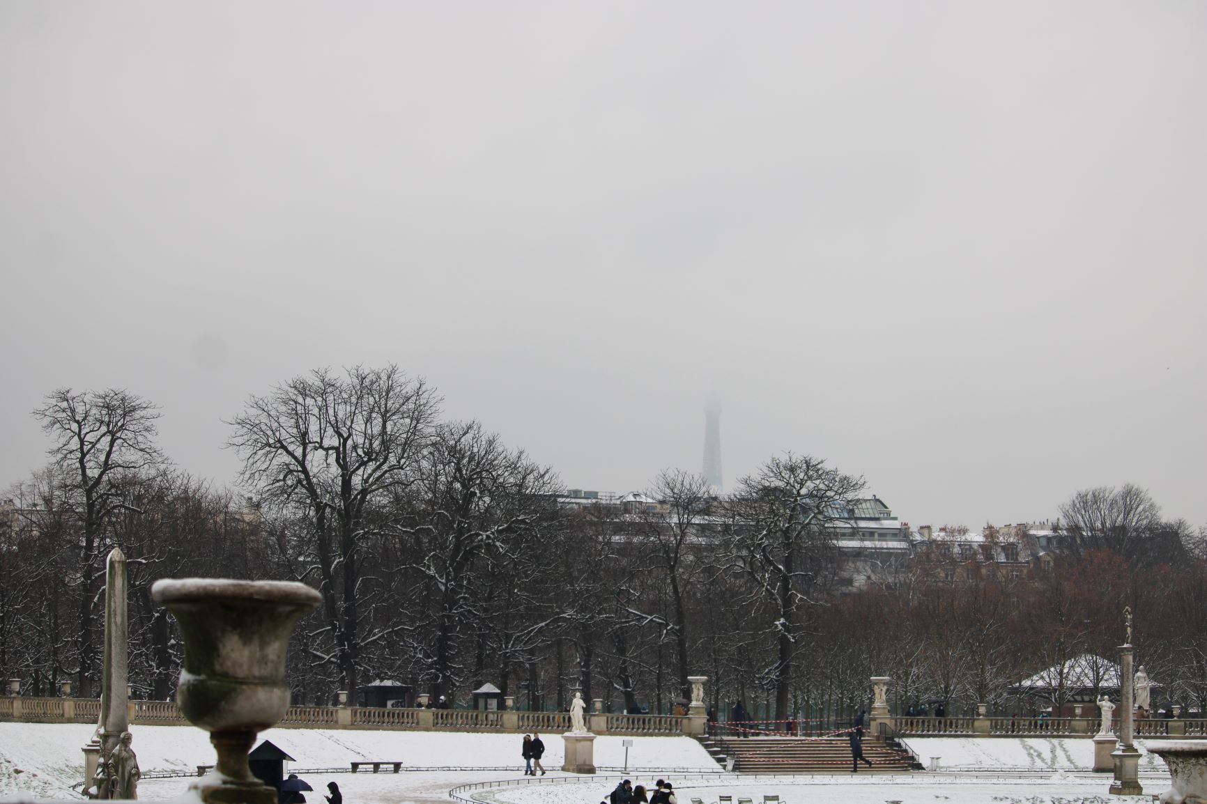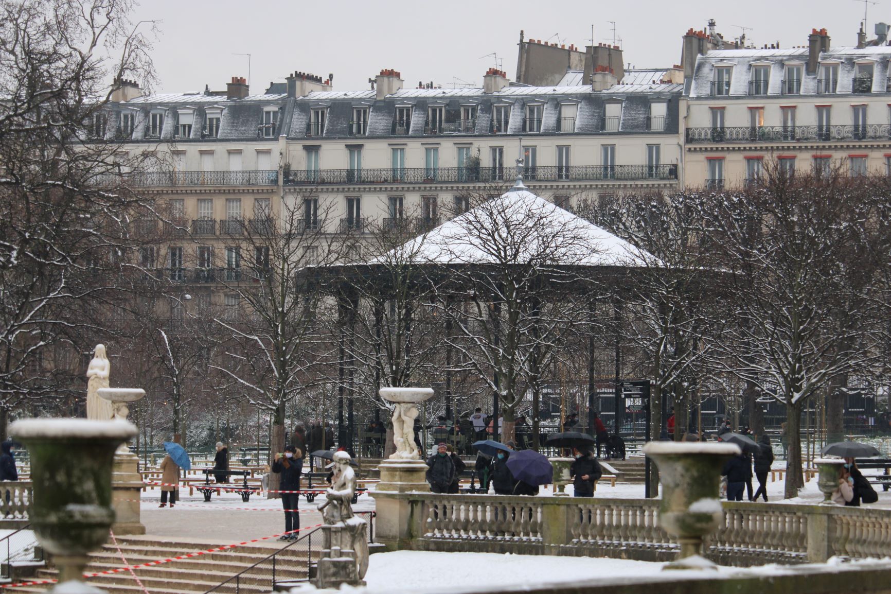 Laying its fine down on the light fixtures, the roofs, inviting us to slide down, covering the benches and the frontages, here is that the snow has penetrated Paris, undoubtedly trying to distract us for a few hours at least and to make us forget the worries of the moment.