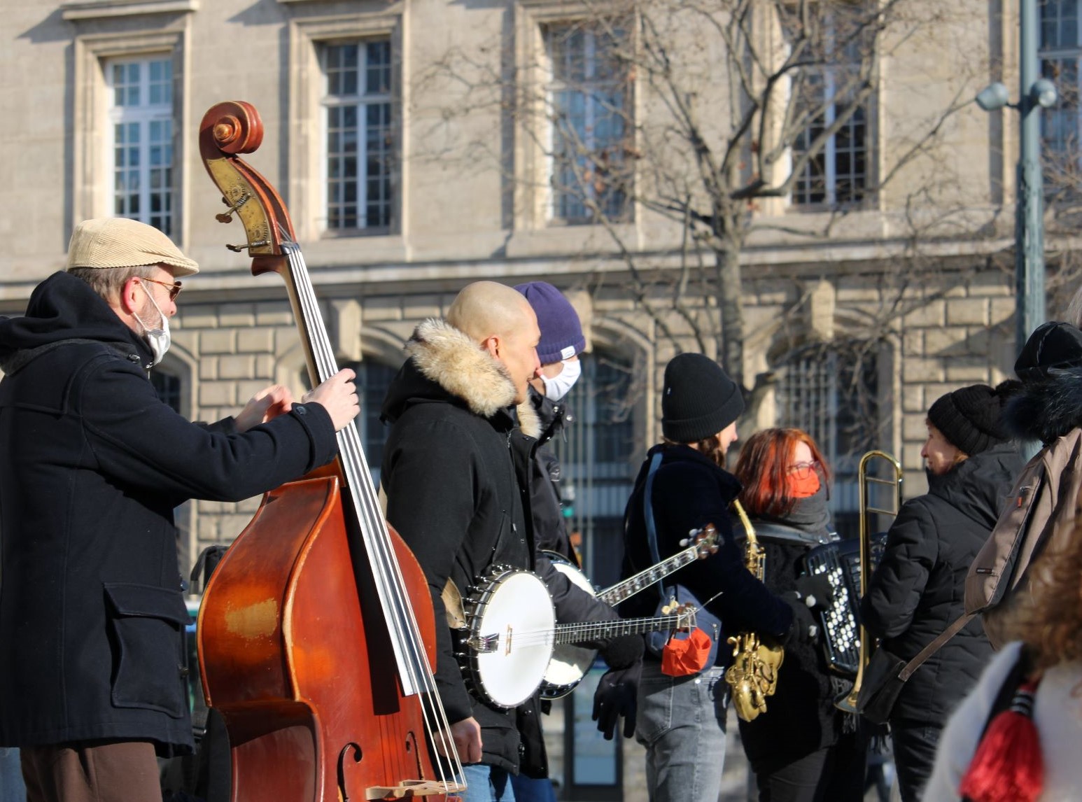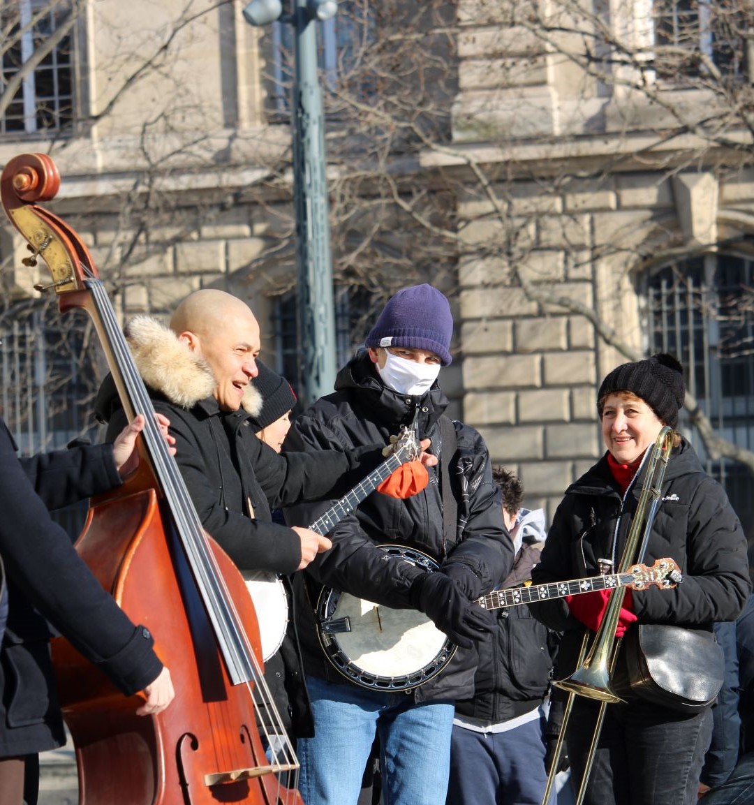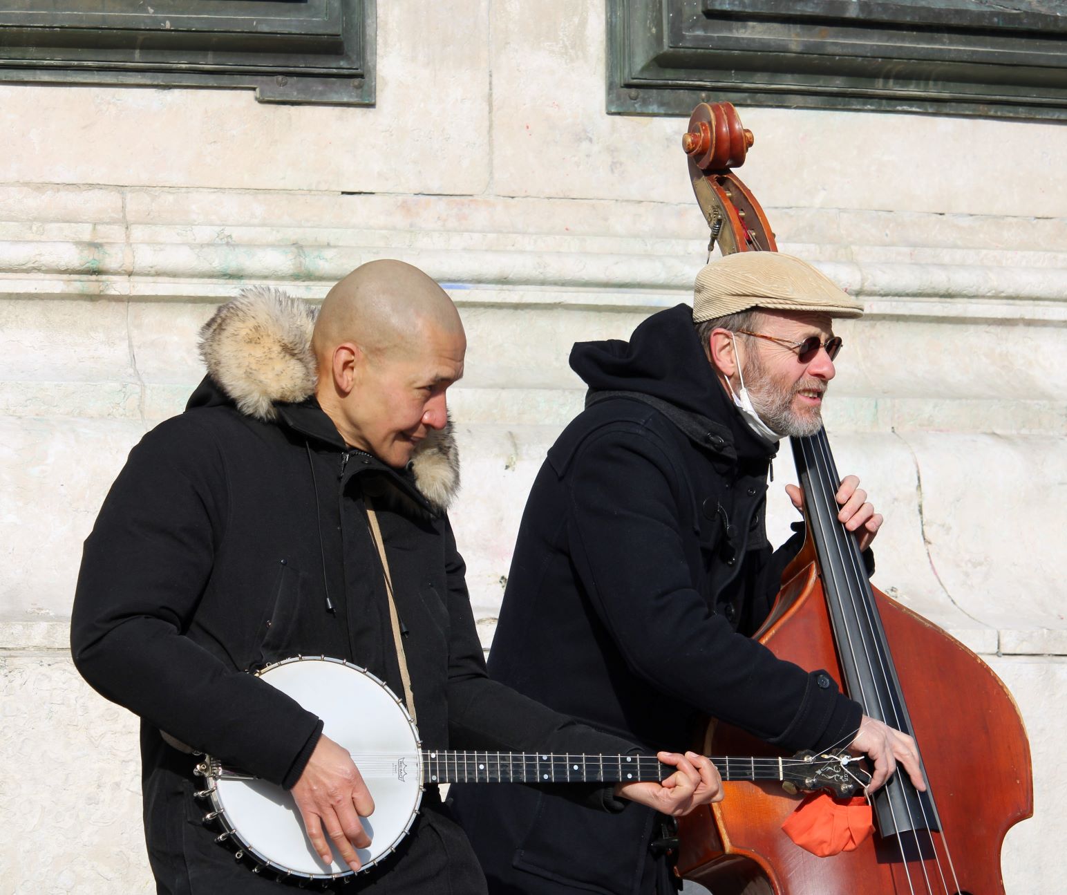 The slide trombone lets out a few notes and the surrounding world stops dead in its tracks, it’s been so long since the city has vibrated on the musicians’ instruments.