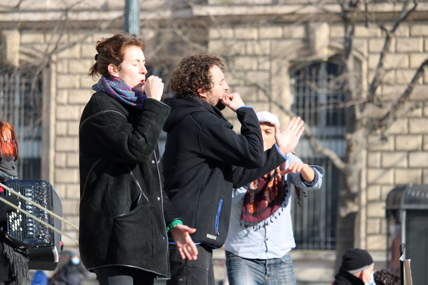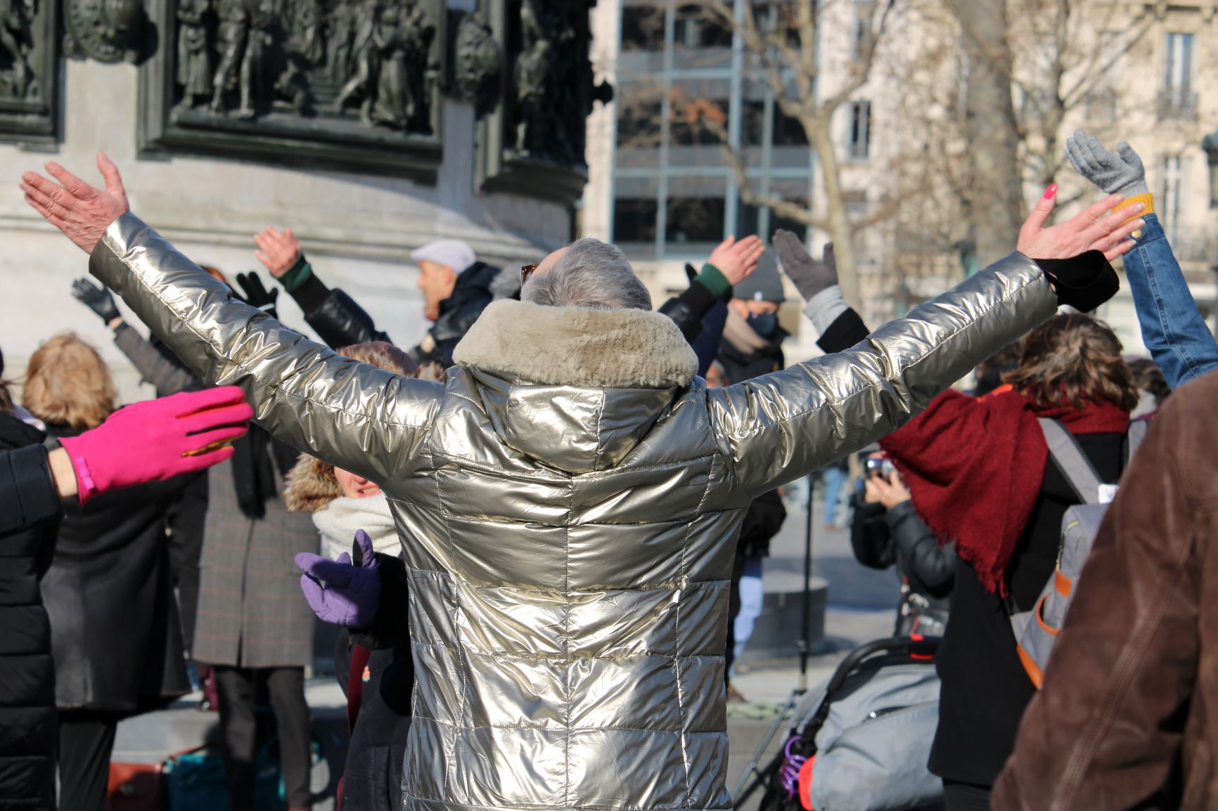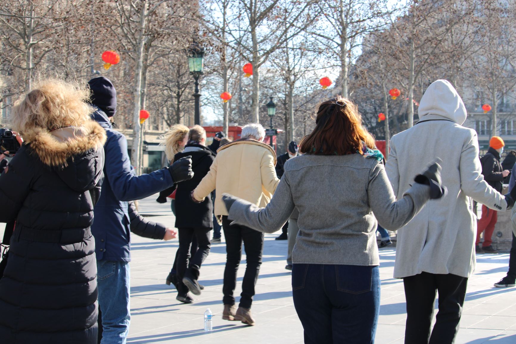 Place de la République, Sunday 10:45 am, as planned, in front of the statue facing the metro mouth, a band of sweet dreamers is already in place! They have come to re-enchant the daily life of Parisians!