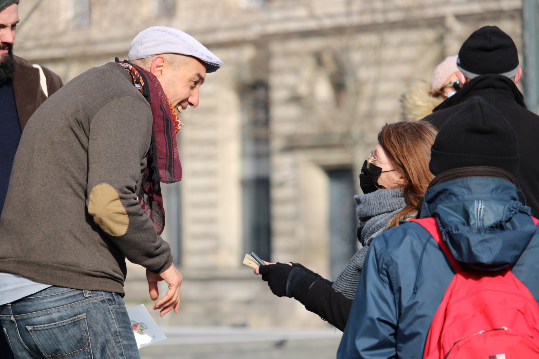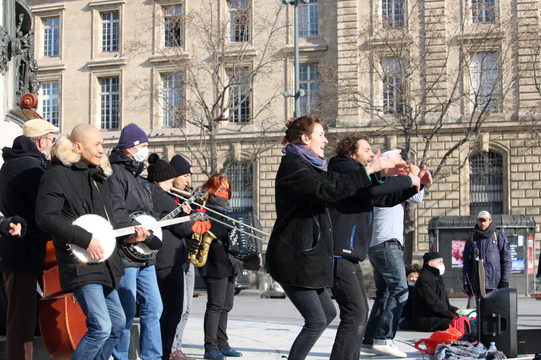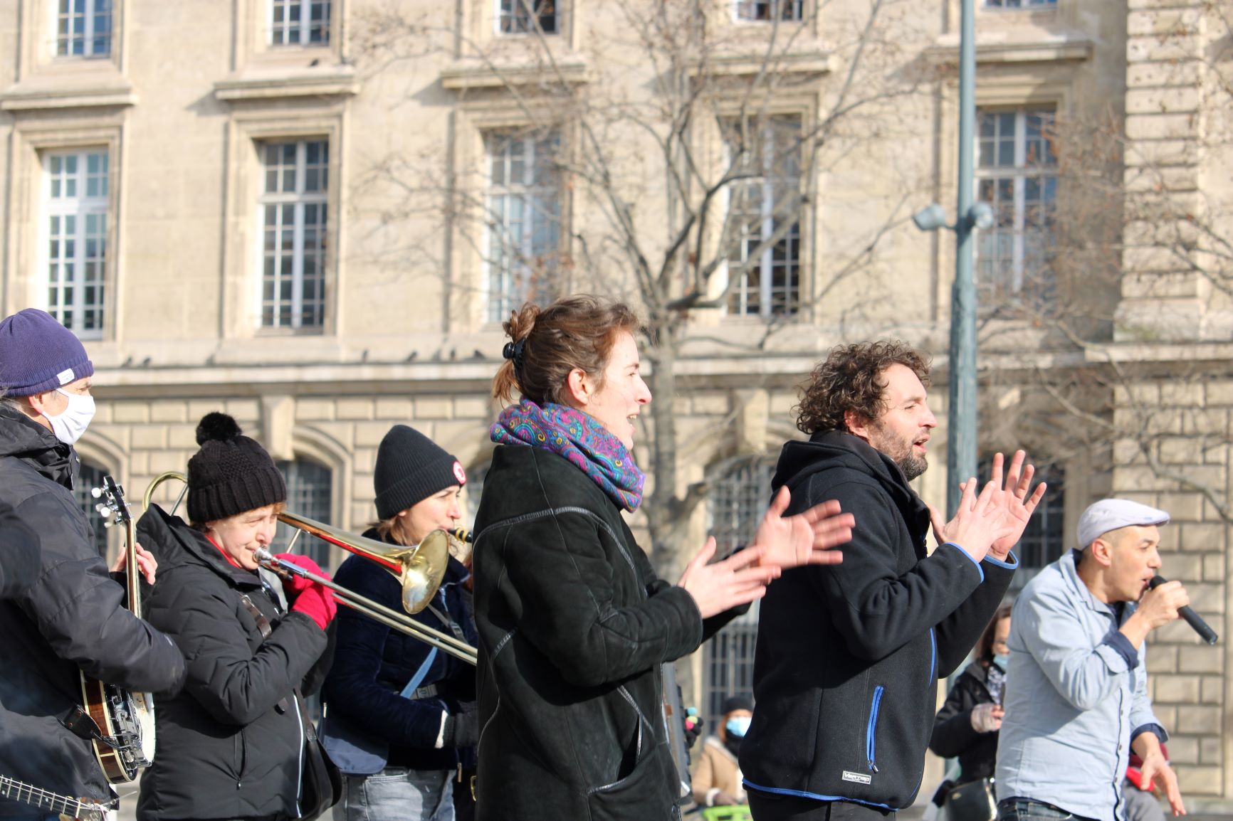 Place de la République, Sunday 10:45 am, as planned, in front of the statue facing the metro mouth, a band of sweet dreamers is already in place! They have come to re-enchant the daily life of Parisians!