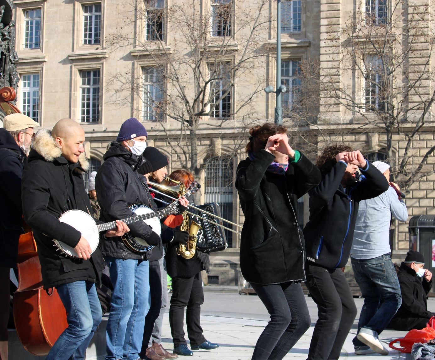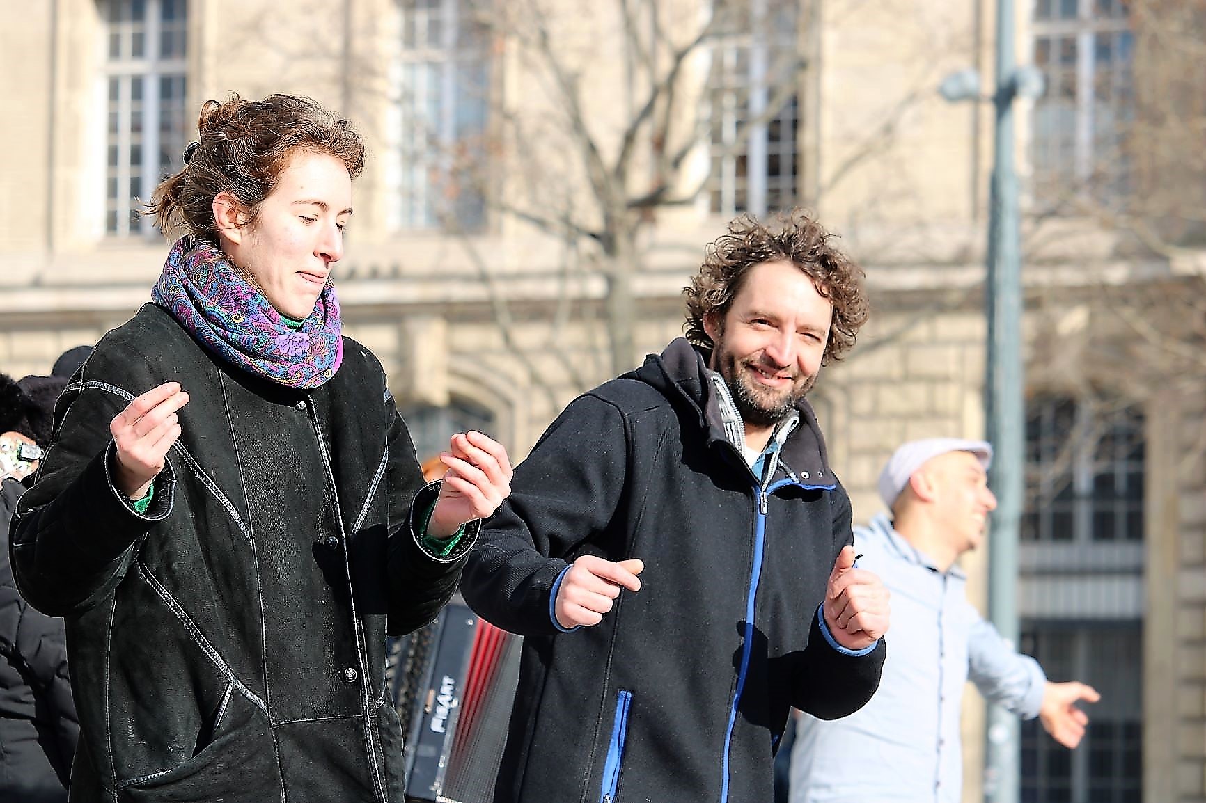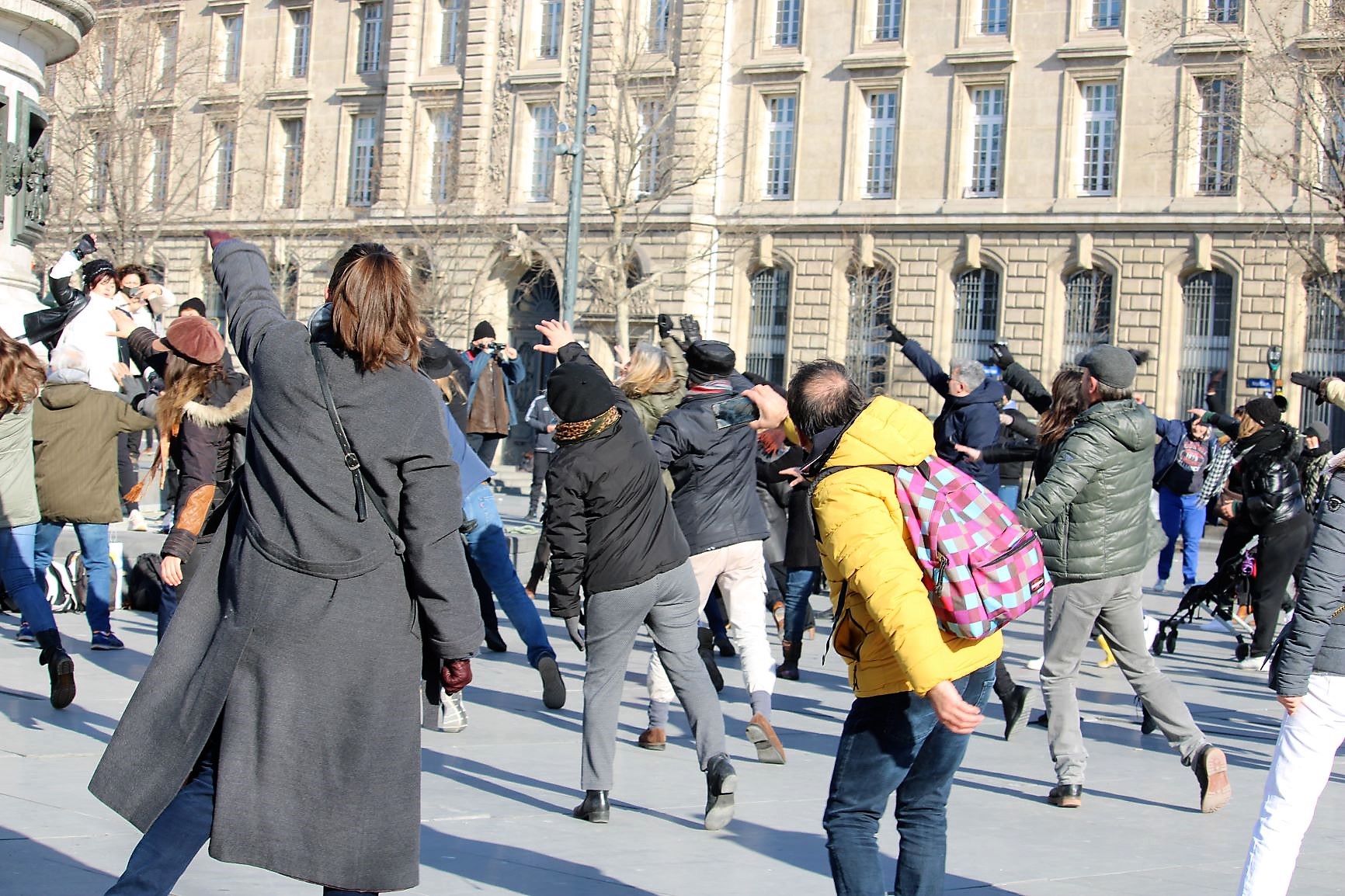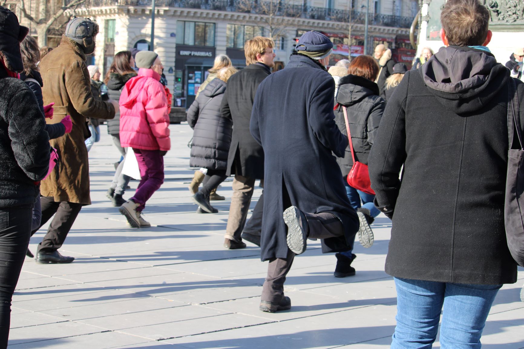 On Saturday night, when night overtakes day, a new message appears on my phone screen. It invites us to a dance appointment on Sunday morning at 10.45 am on the Place de la République. What if we go there?