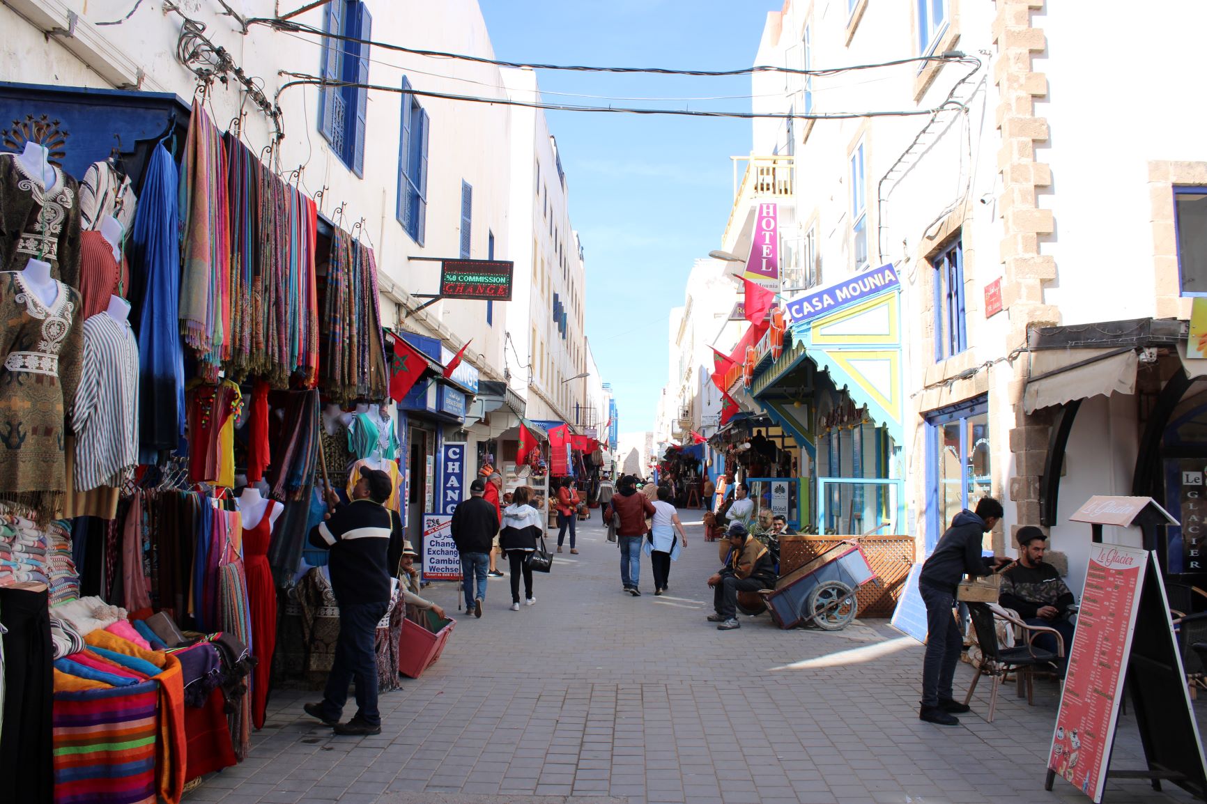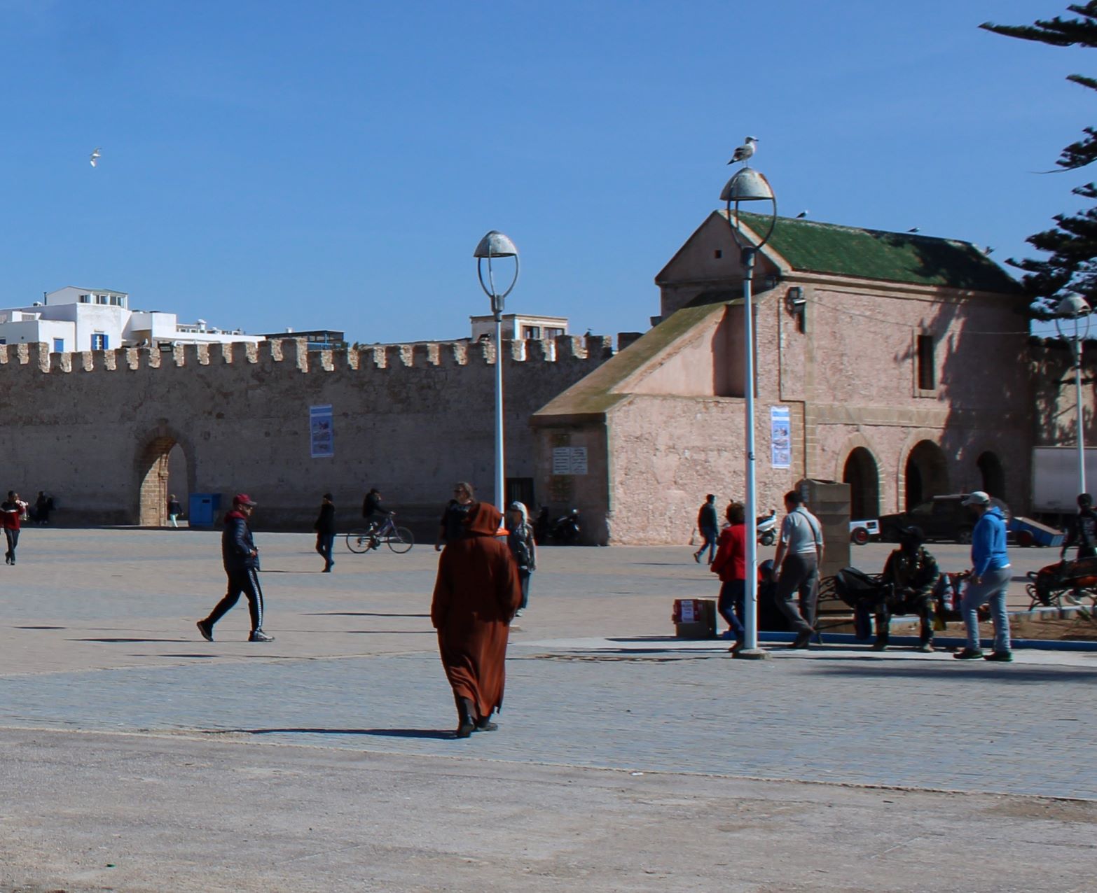 Au petit matin, alors que le soleil commence à se jouer de l’ombre, déambuler dans les rues de la célèbre Mogador et croiser des silhouettes en pleine conversation.