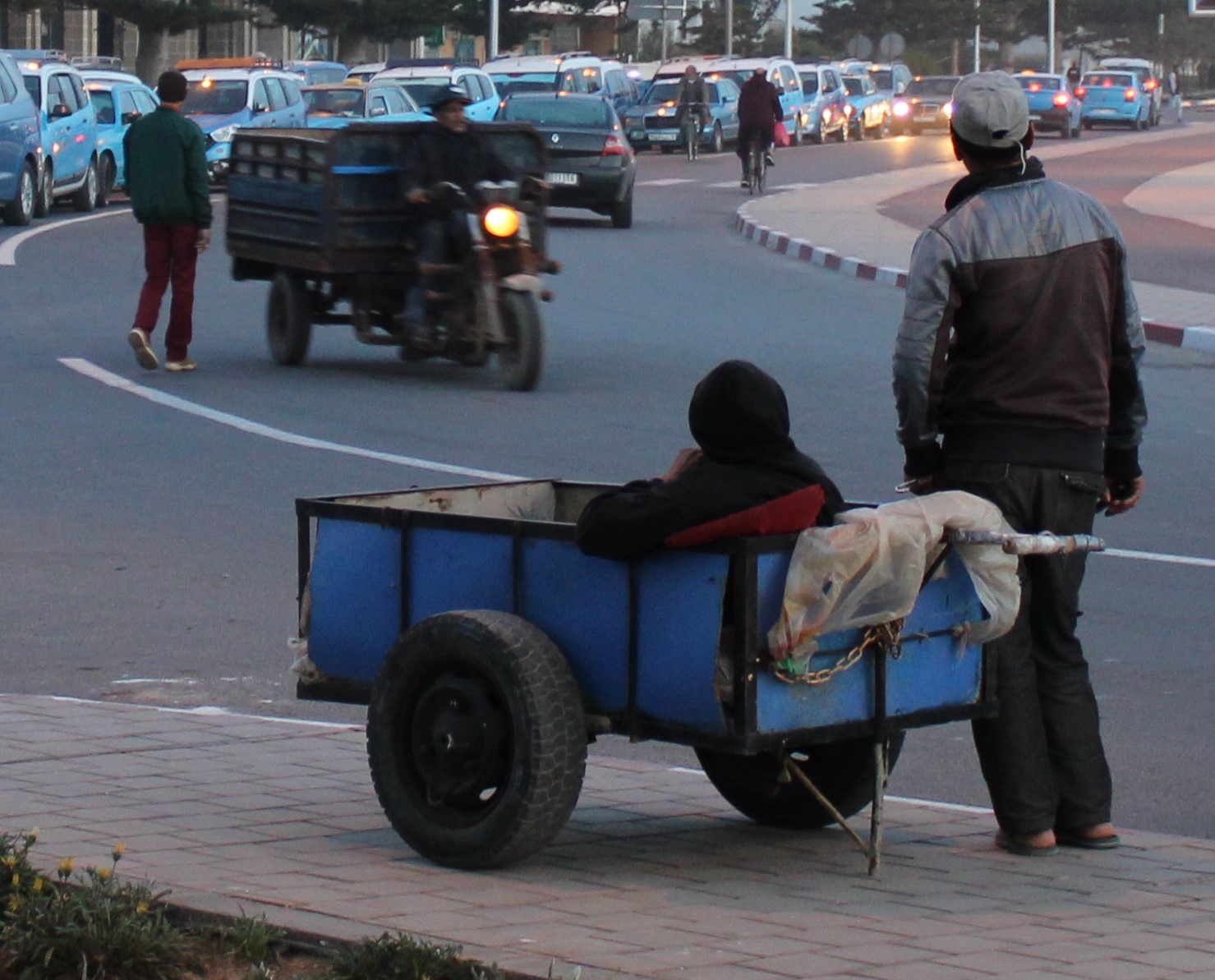 Tout en rejoignant la ville, croiser les silhouettes des porteurs qui prennent un temps de repos au terme d’une journée bien remplie.