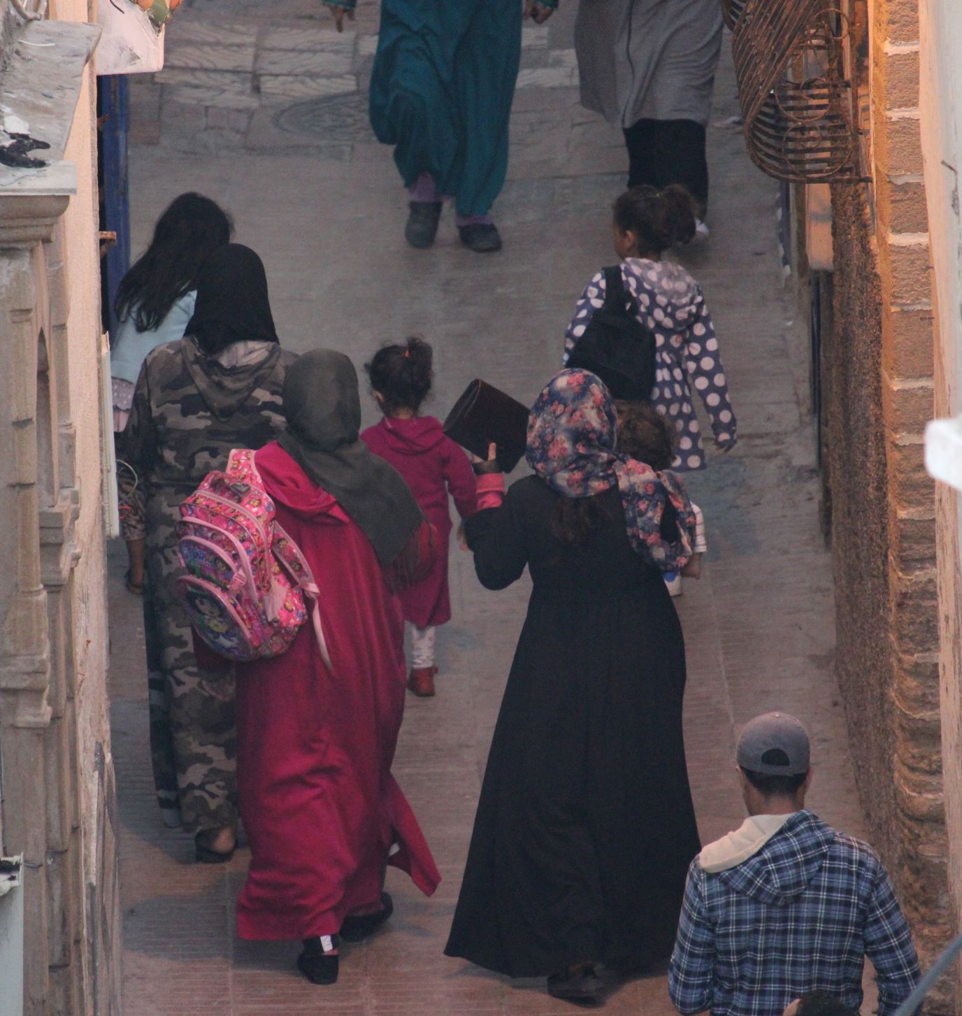 Rentrer à la maison, en se faufilant parmi les nombreuses silhouettes qui se pressent dans les rues étroites de la Médina, juste avant la nuit tombante.