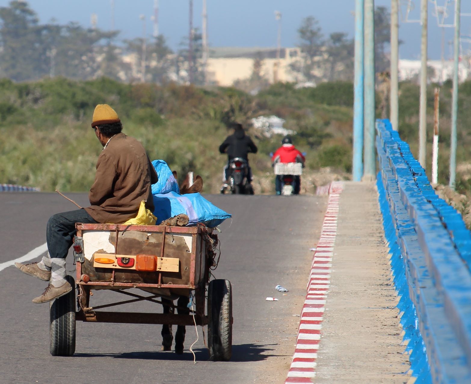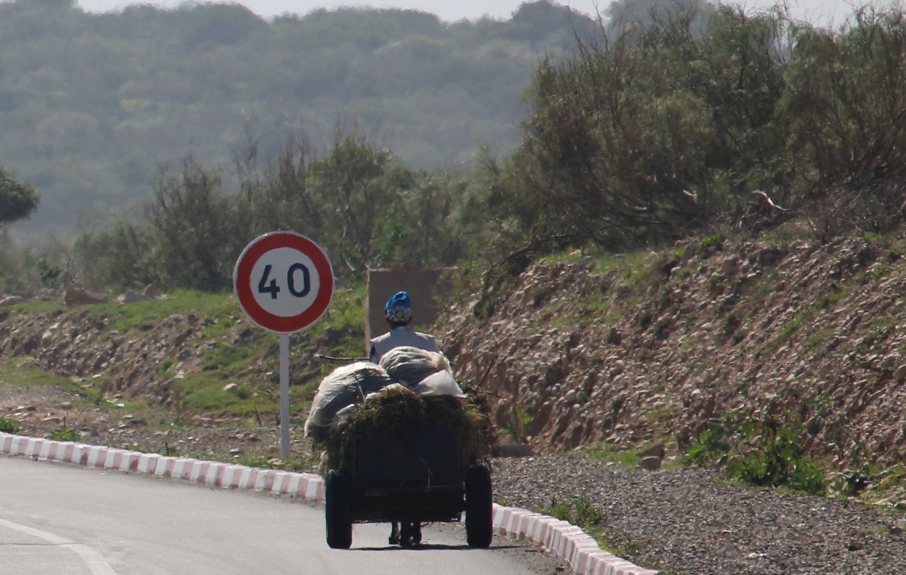 Plisser les yeux et distinguer la silhouette d’un vieil homme qui se repose à côté de sa cariole…