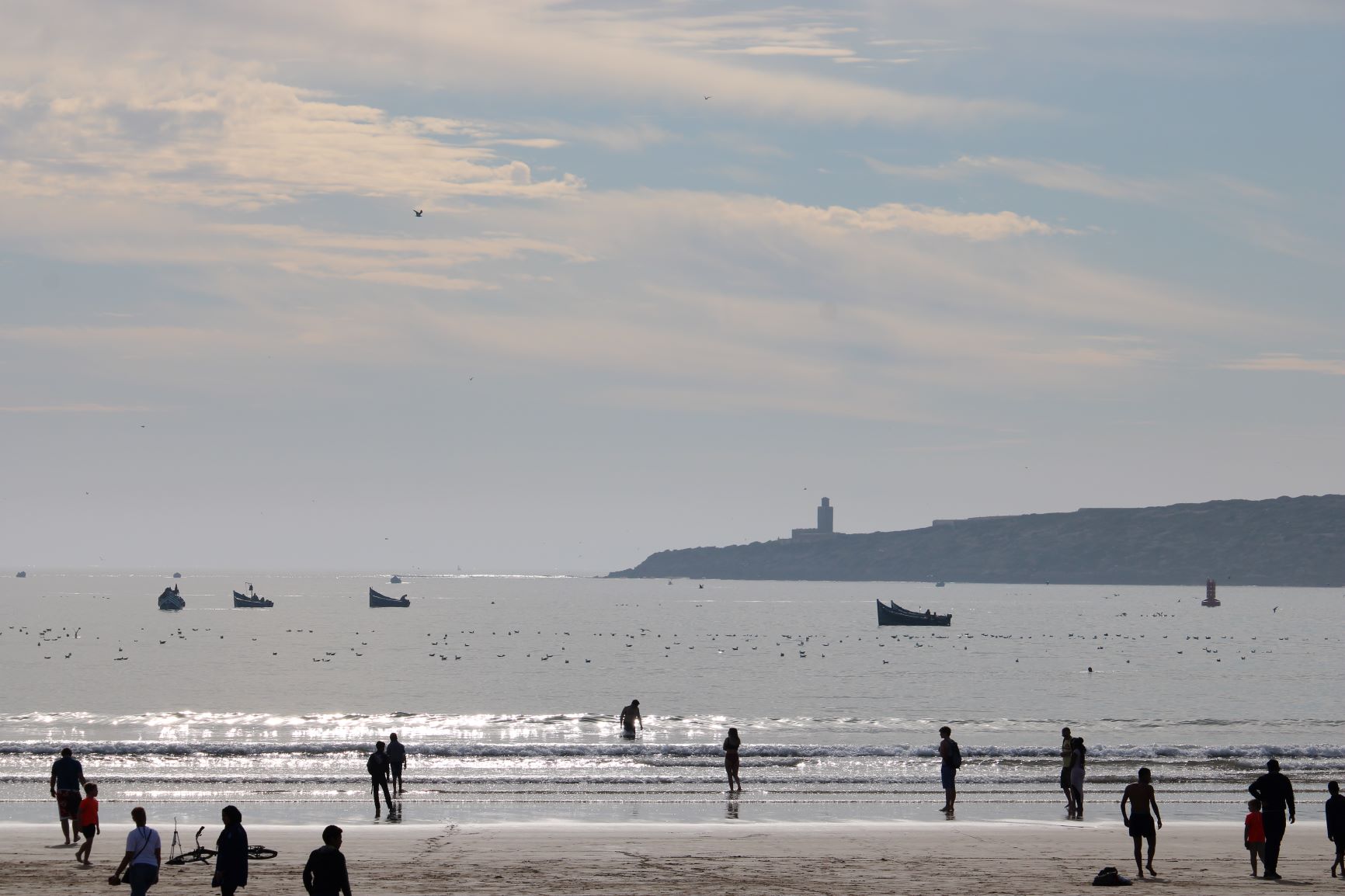 Distinguer de multiples silhouettes et contempler la palette d’activités humaines, à cette heure, sur la plage et sur la mer.