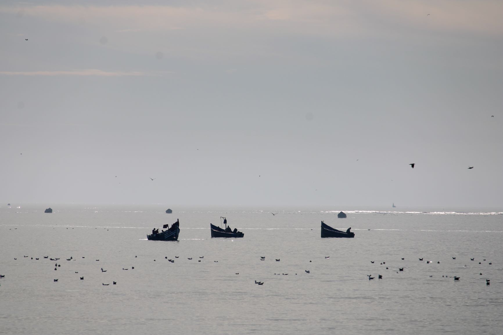 Se reposer un moment en discernant la silhouette de trois barques en contre-jour.
