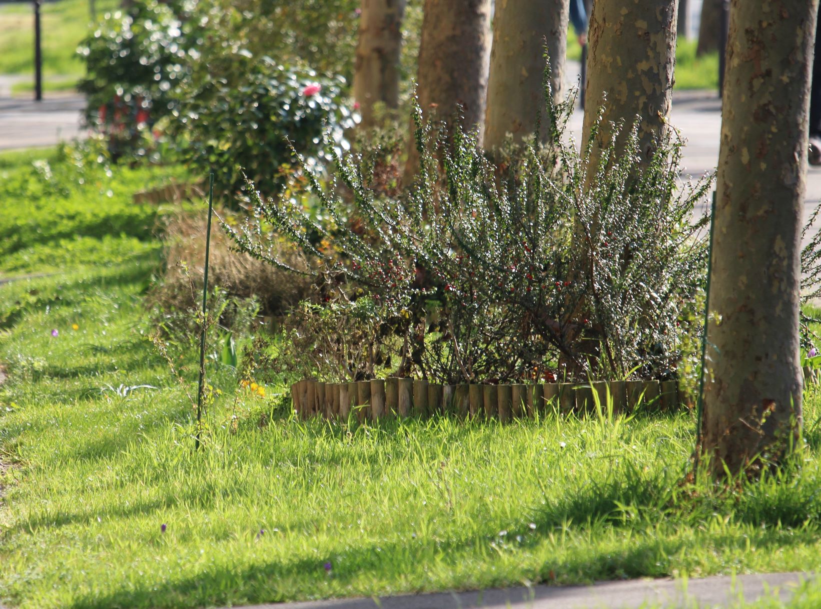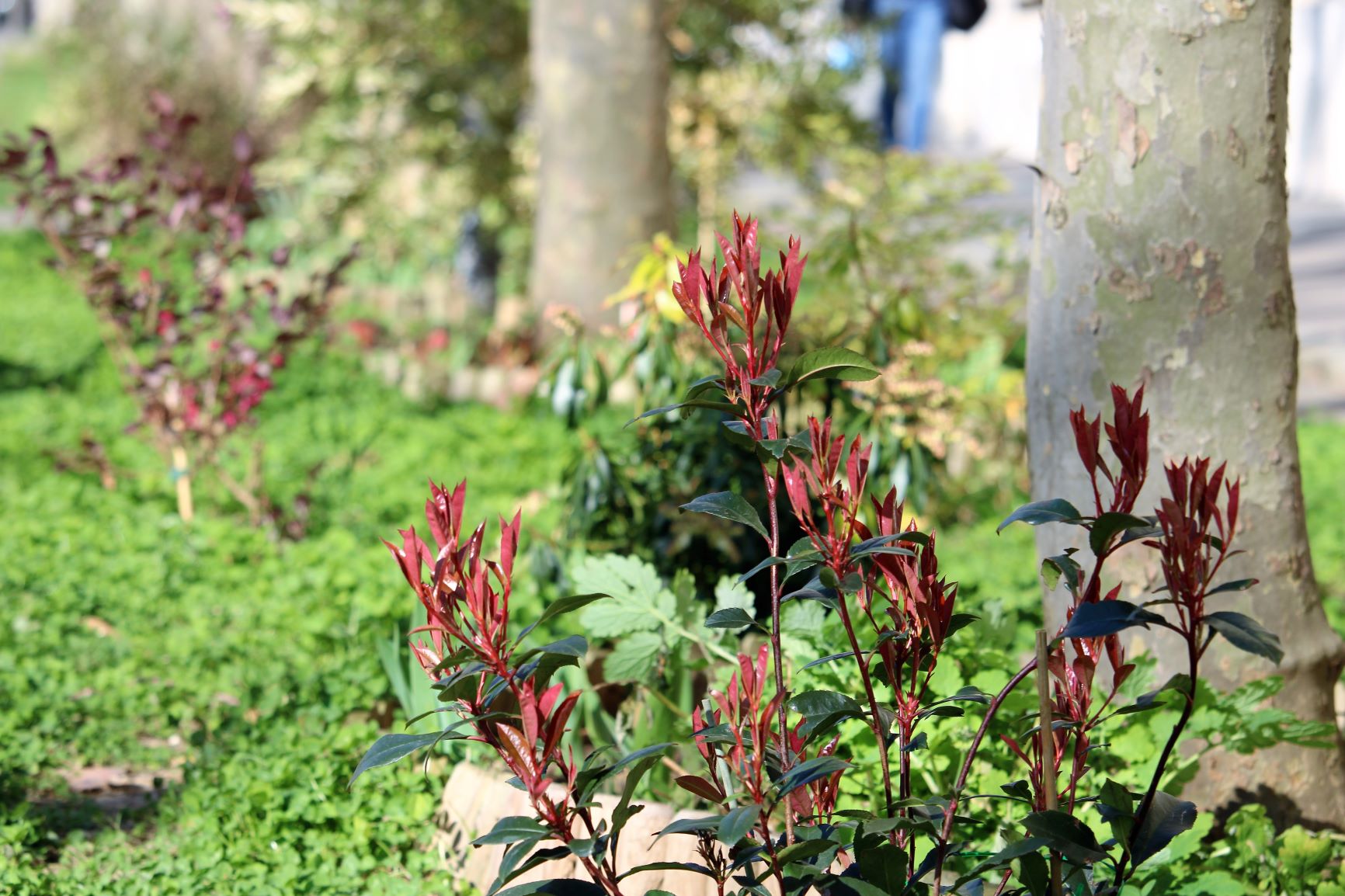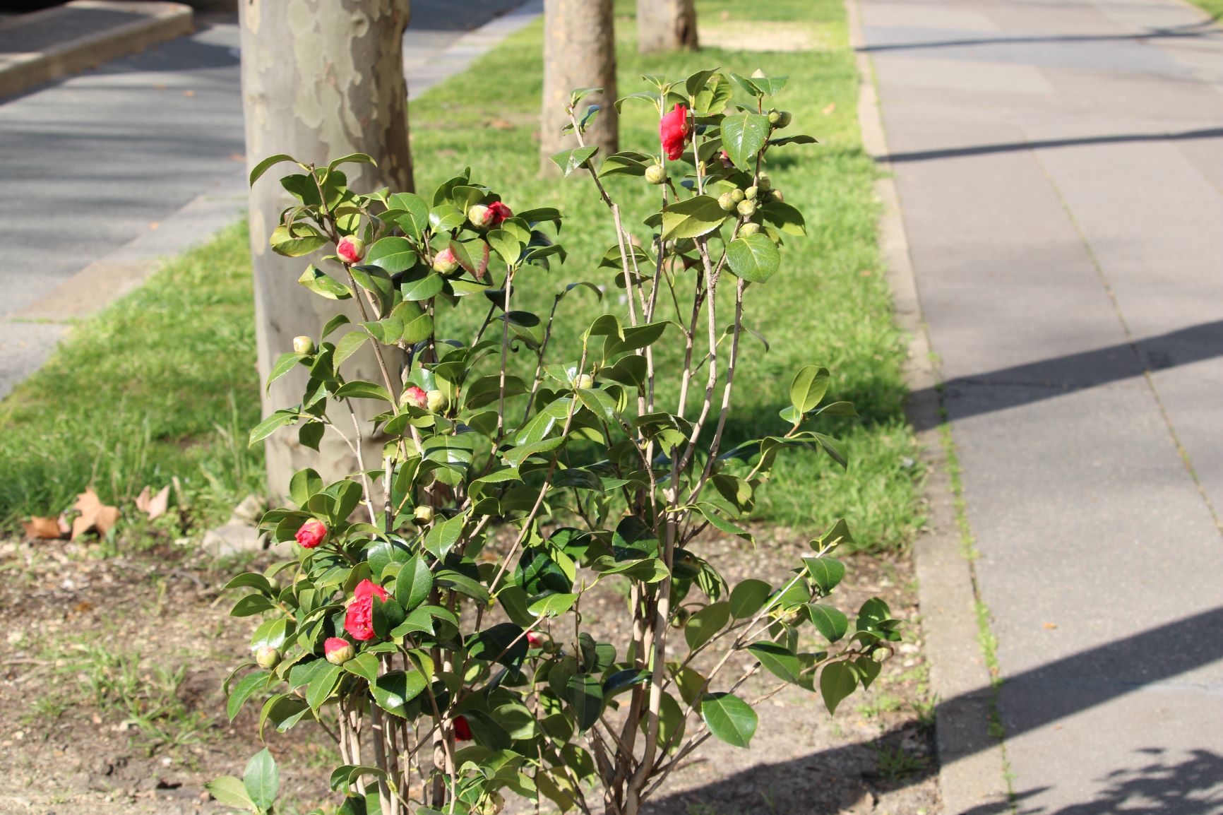 Enjoy the pink and red camellias along the cycle path.