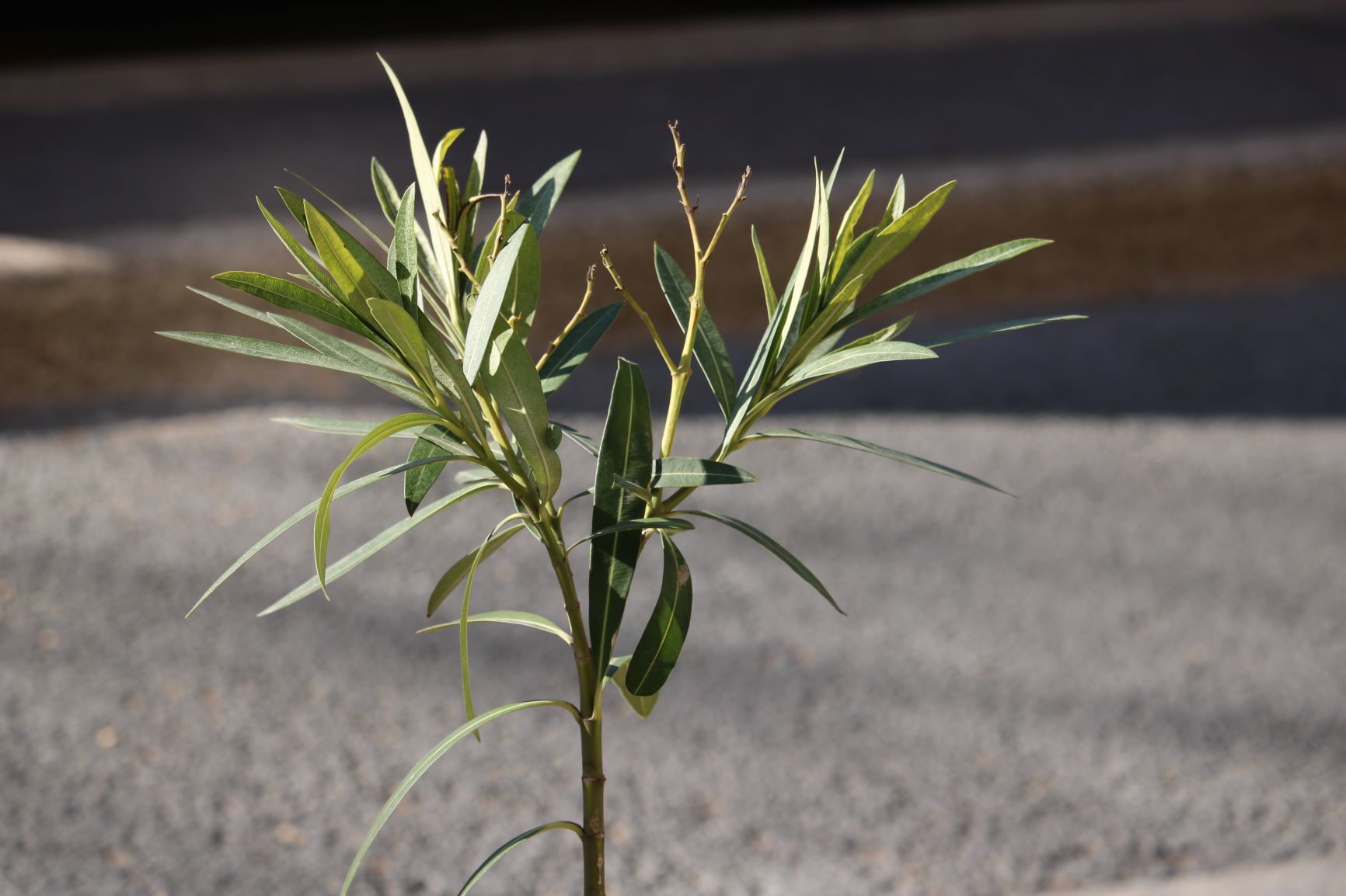 Contemplating a small laurel, a promise of new flowers to come.