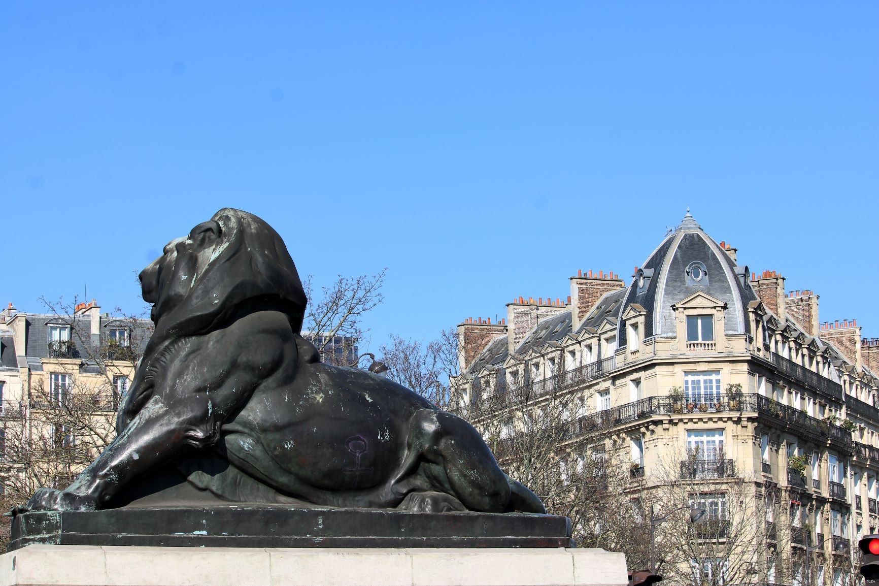Find the famous lion that dominates the square.