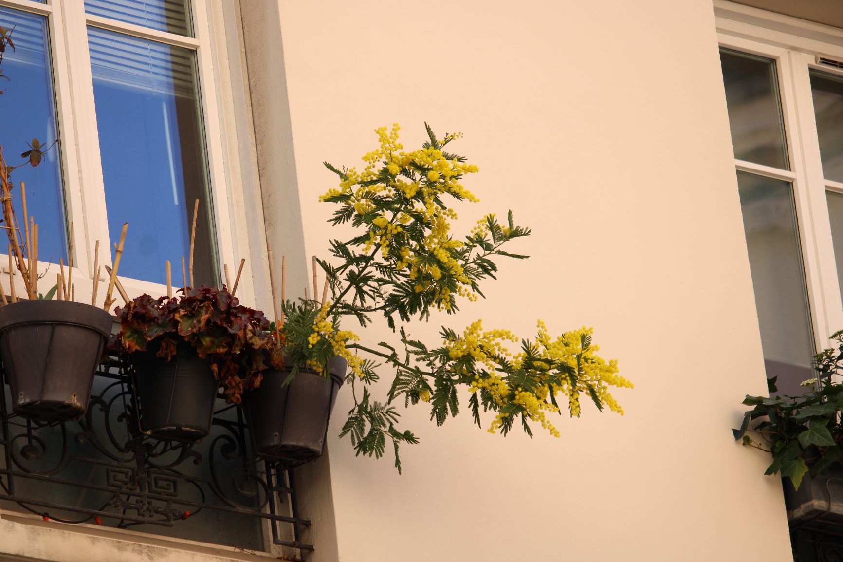 At the corner of the street, smell a small mimosa in bloom.