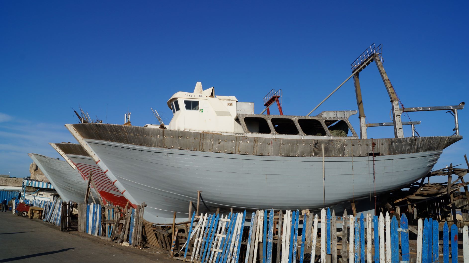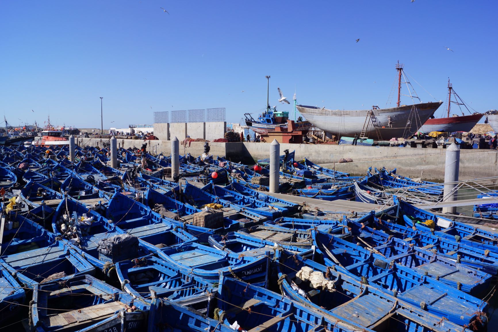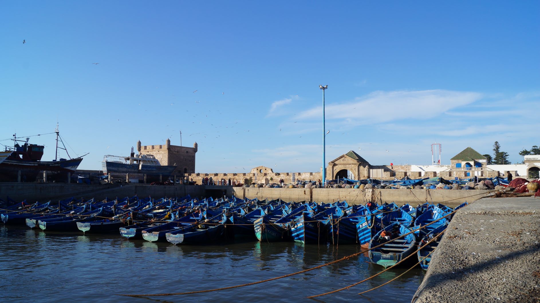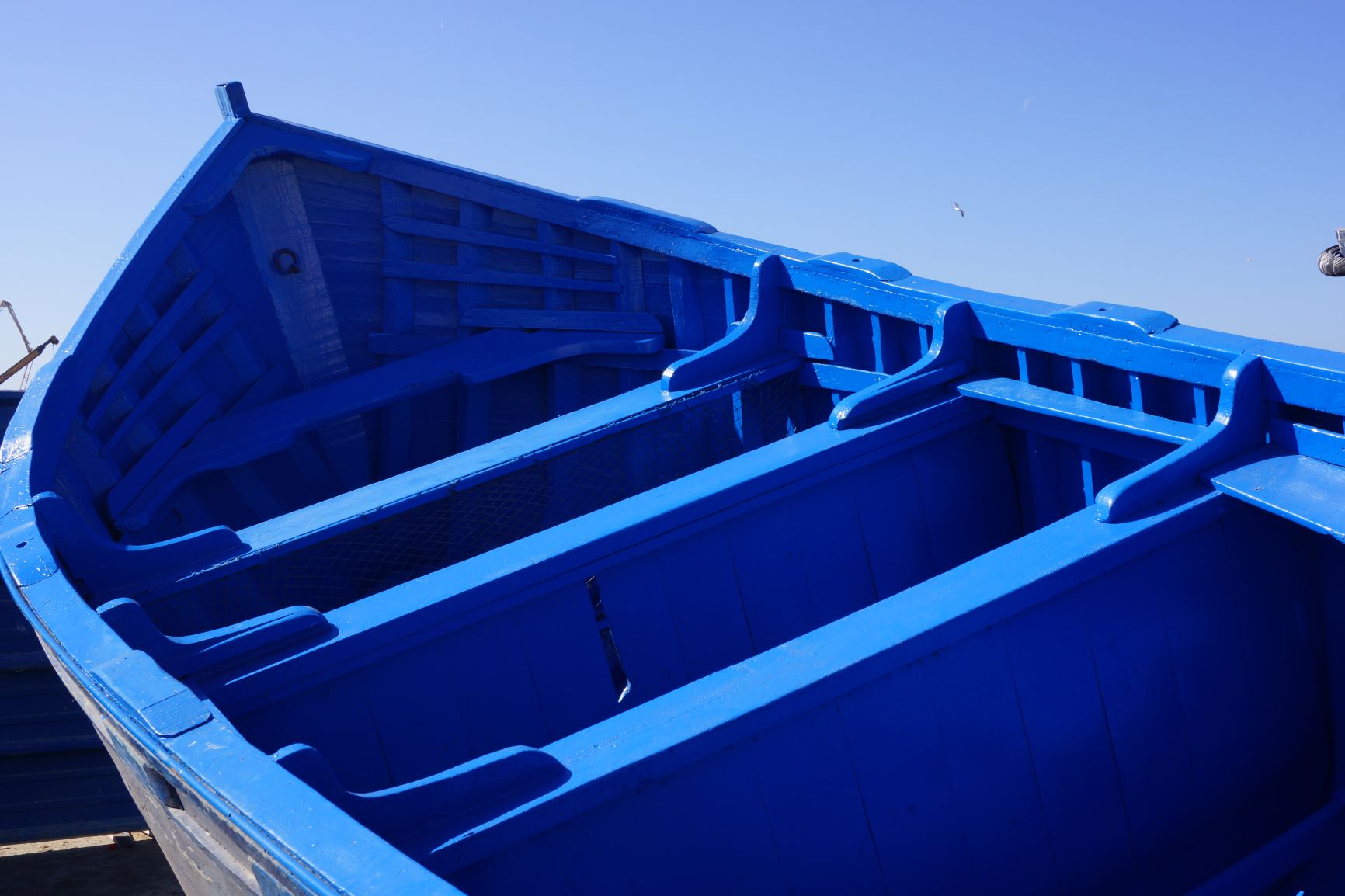 Regarder les barques de plus près et y discerner toutes les gammes du ciel bleu d’Essaouira.
