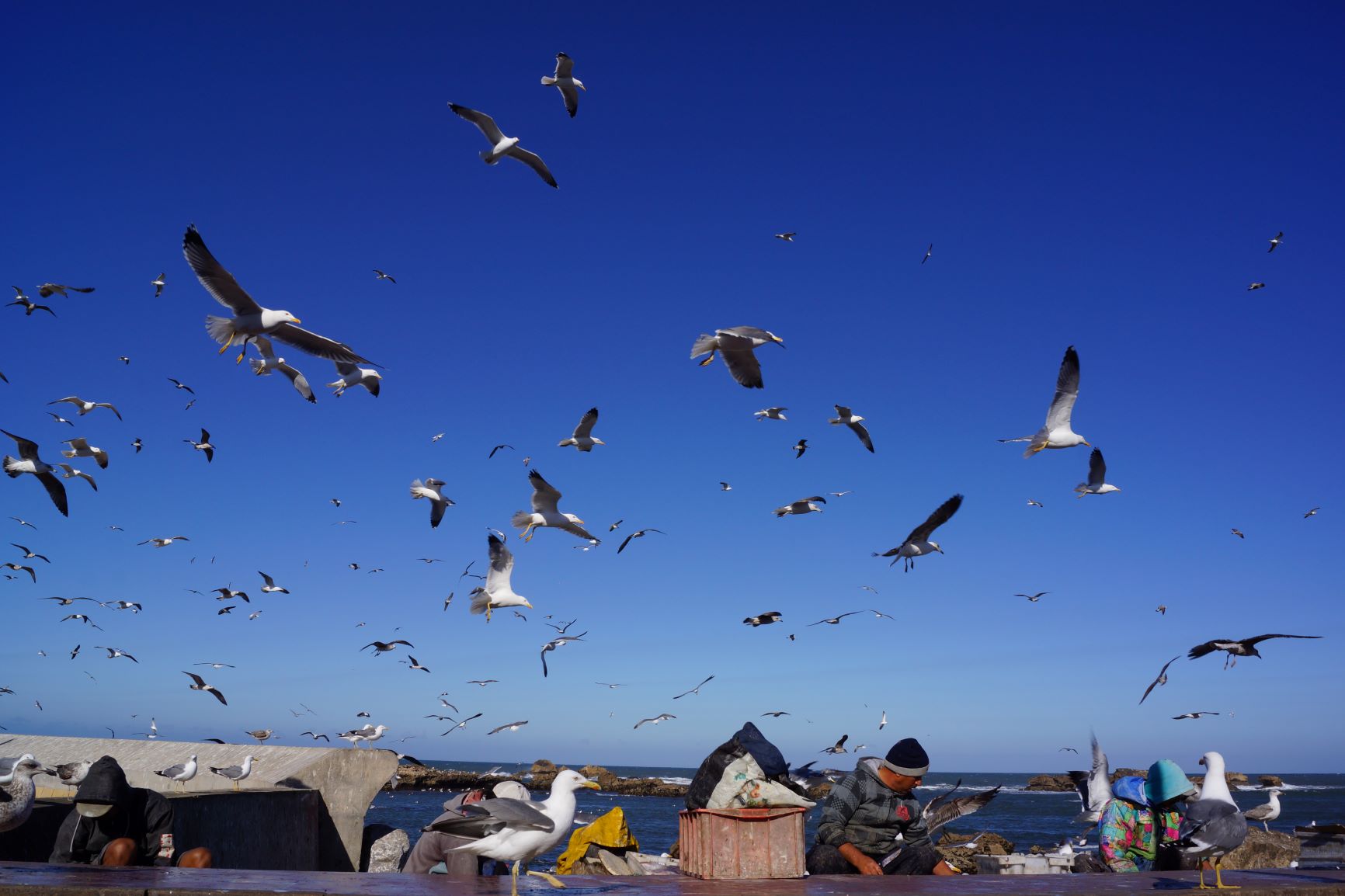 Depuis la Skala du port, admirer les nuées de mouettes qui défient la Mogador et ses vieux murs.