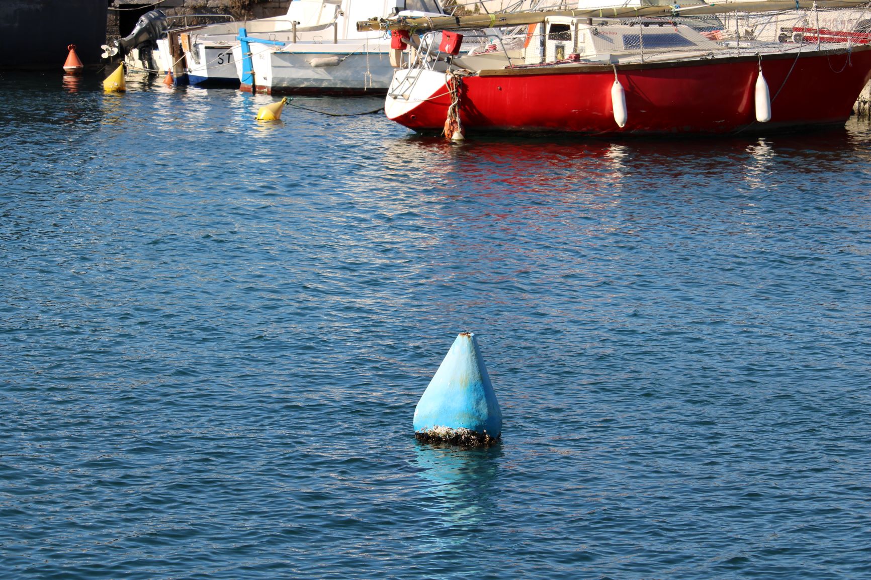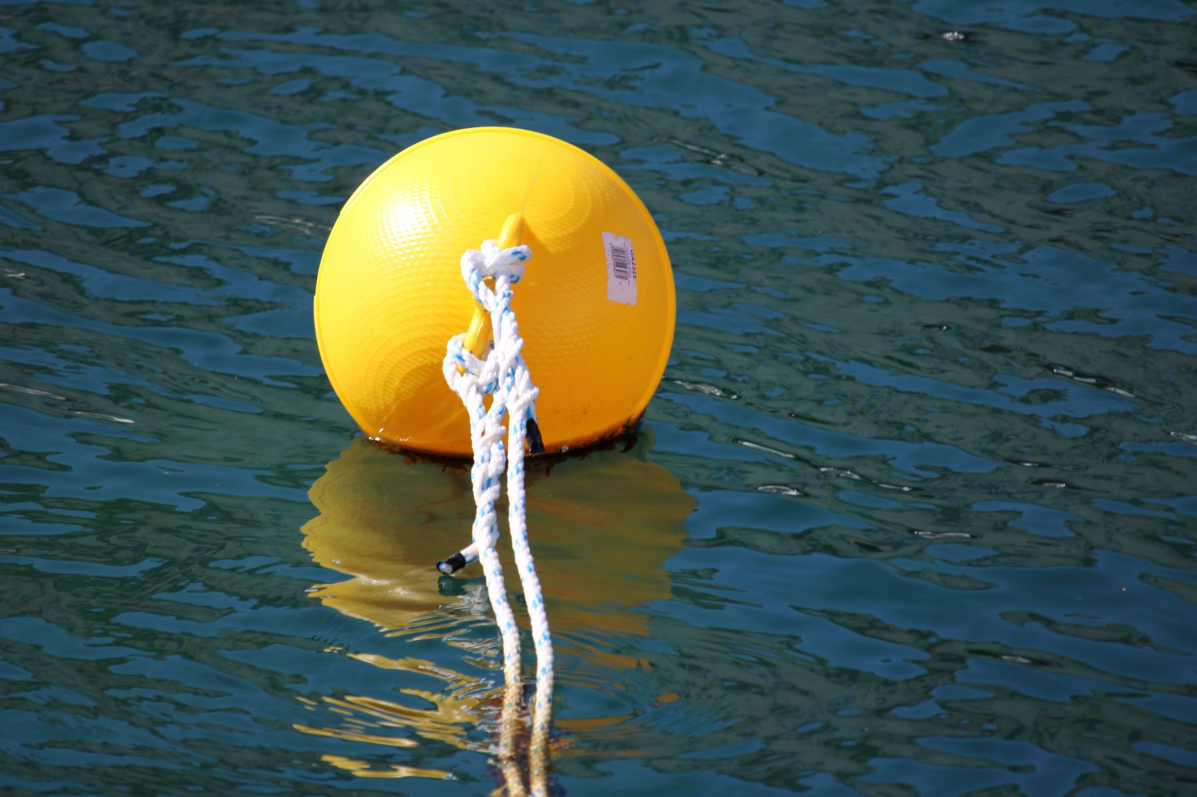 Distinguish a brand new buoy that floats on the water and whose reflection brightens up the canal.