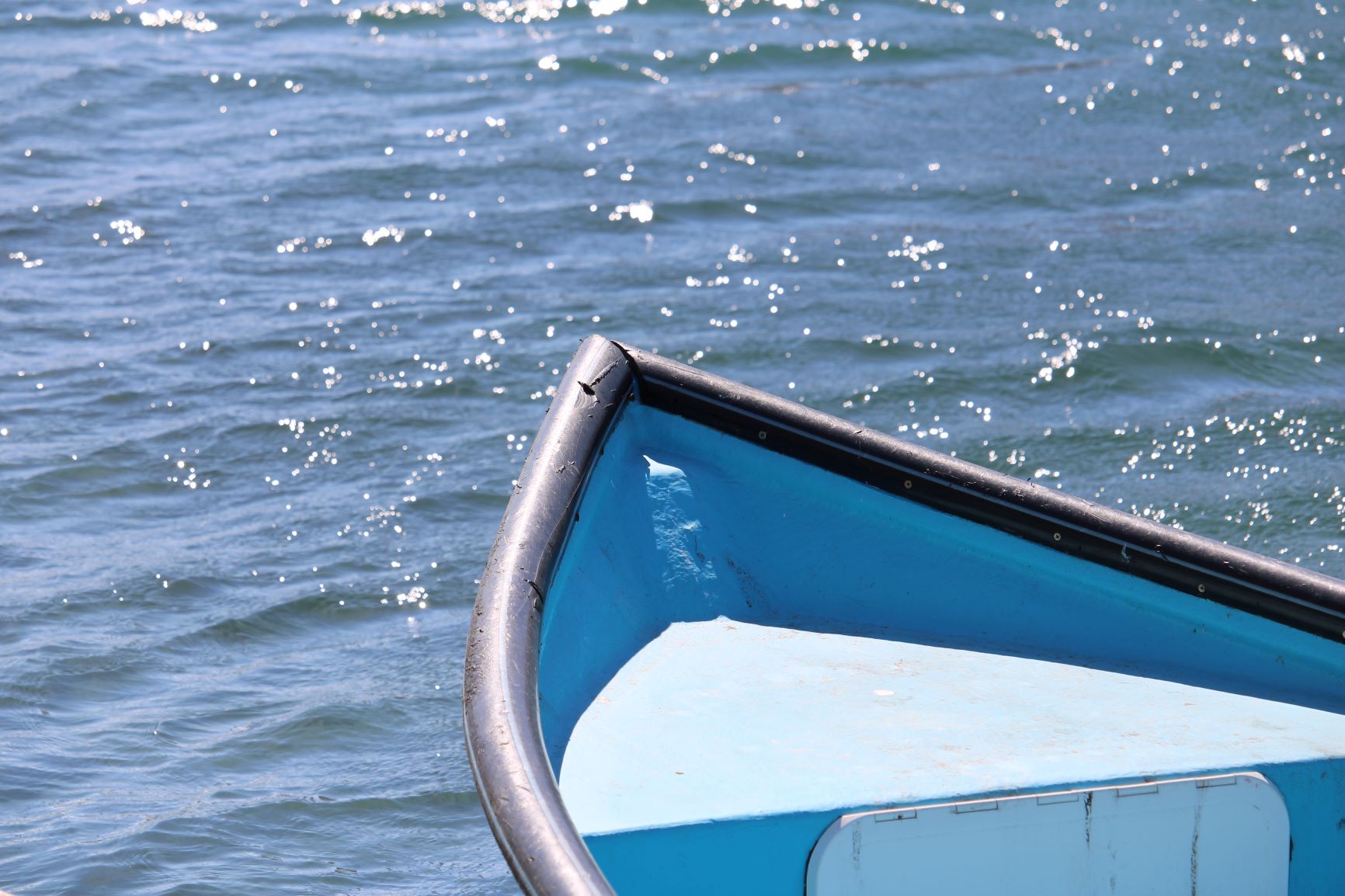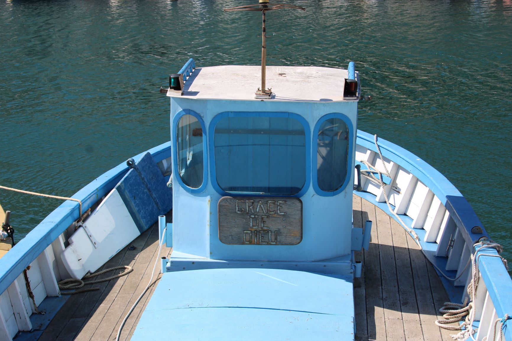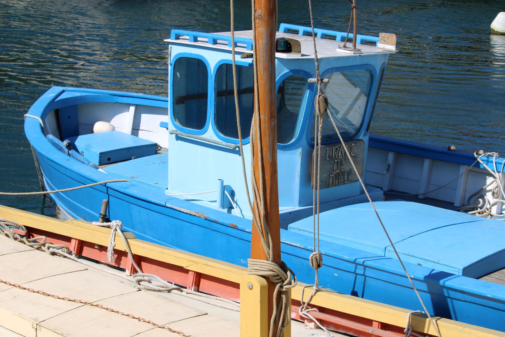 Go deeper into the harbour and discover yet another boat in pastel blue hues.