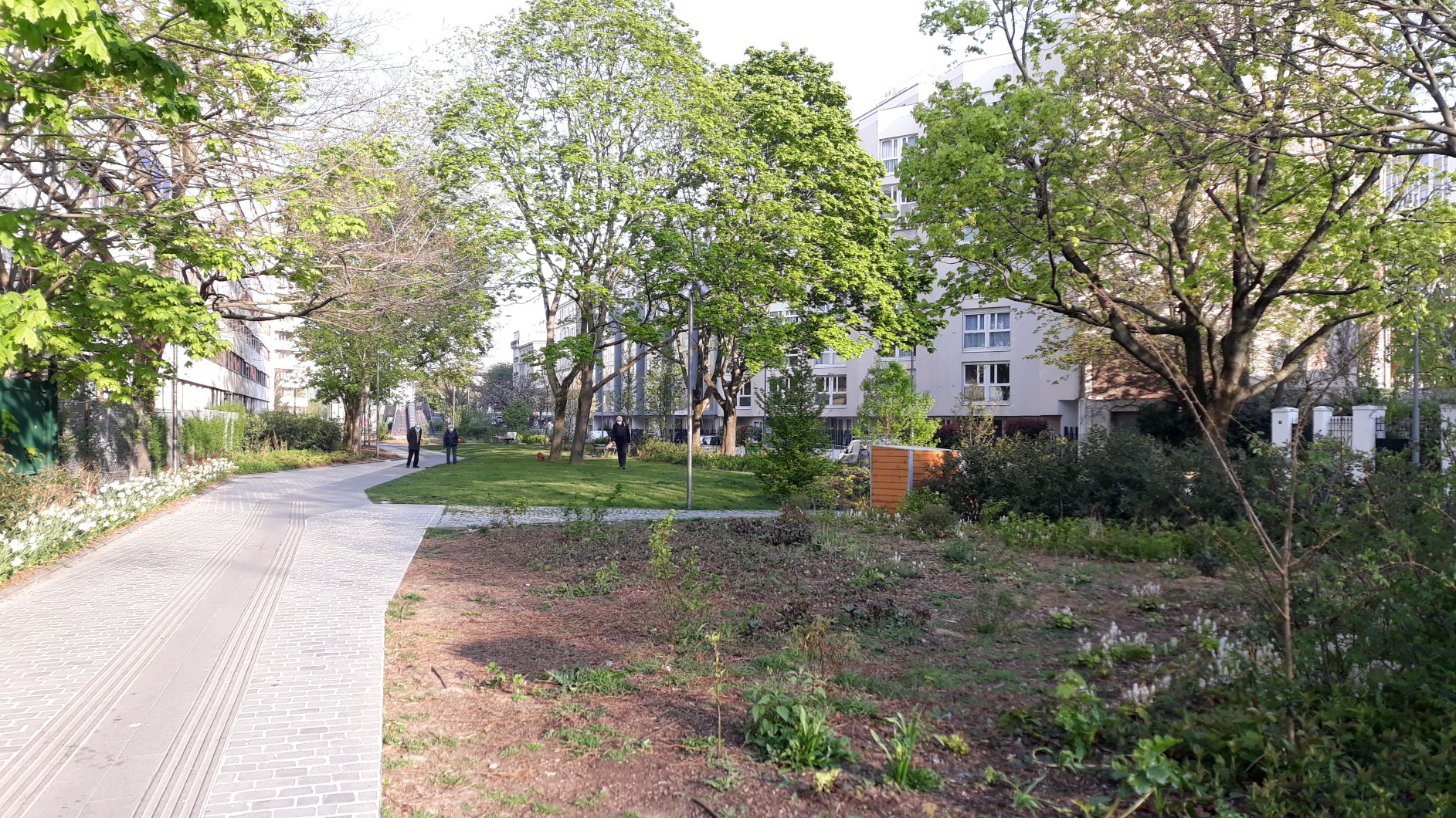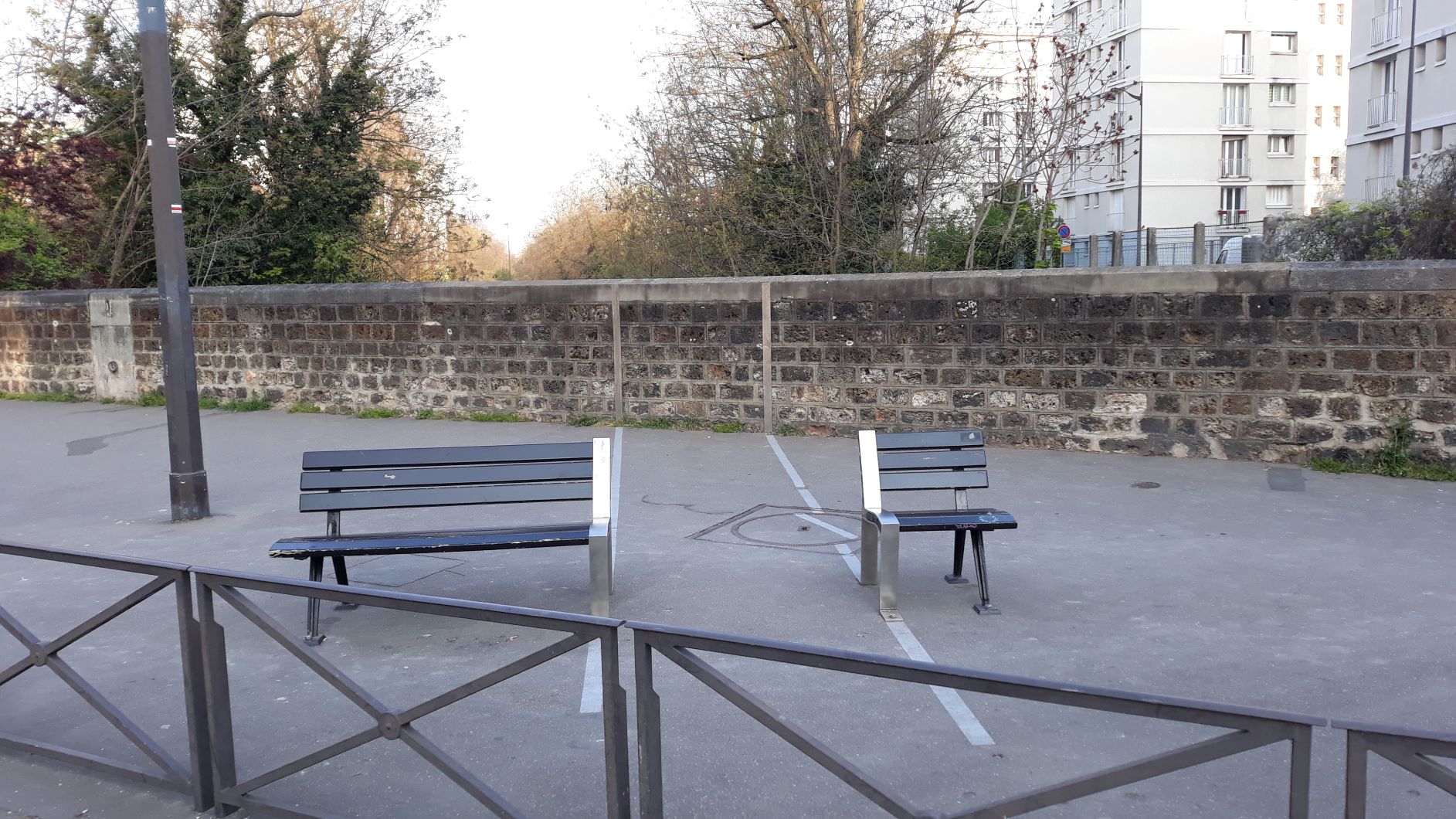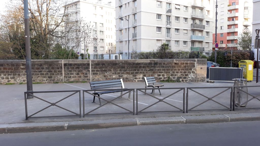 Rappelez-vous, vous vous êtes joints à moi sur le chemin du travail et nous nous sommes quittés alors que nous arrivions à l’arbre fleuri marquant l’extrémité du jardin partagé de la rue de Coulmiers… si cela ne vous dit rien, c’est que vous prenez le chemin en cours, alors soyez la-le bienvenu-e pour la suite de cette marche. Mais si vous souhaitez faire le parcours depuis le début, rendez-vous sur https://nathjy.travel.blog/2021/05/03/au-petit-matin-tout-en-cheminant-du-14eme-au-15eme-1ere-partie/. Pour ceux qui continuent, en avant !… Quel est donc cet étrange banc de l’autre côté de l’avenue Jean Moulin ?…