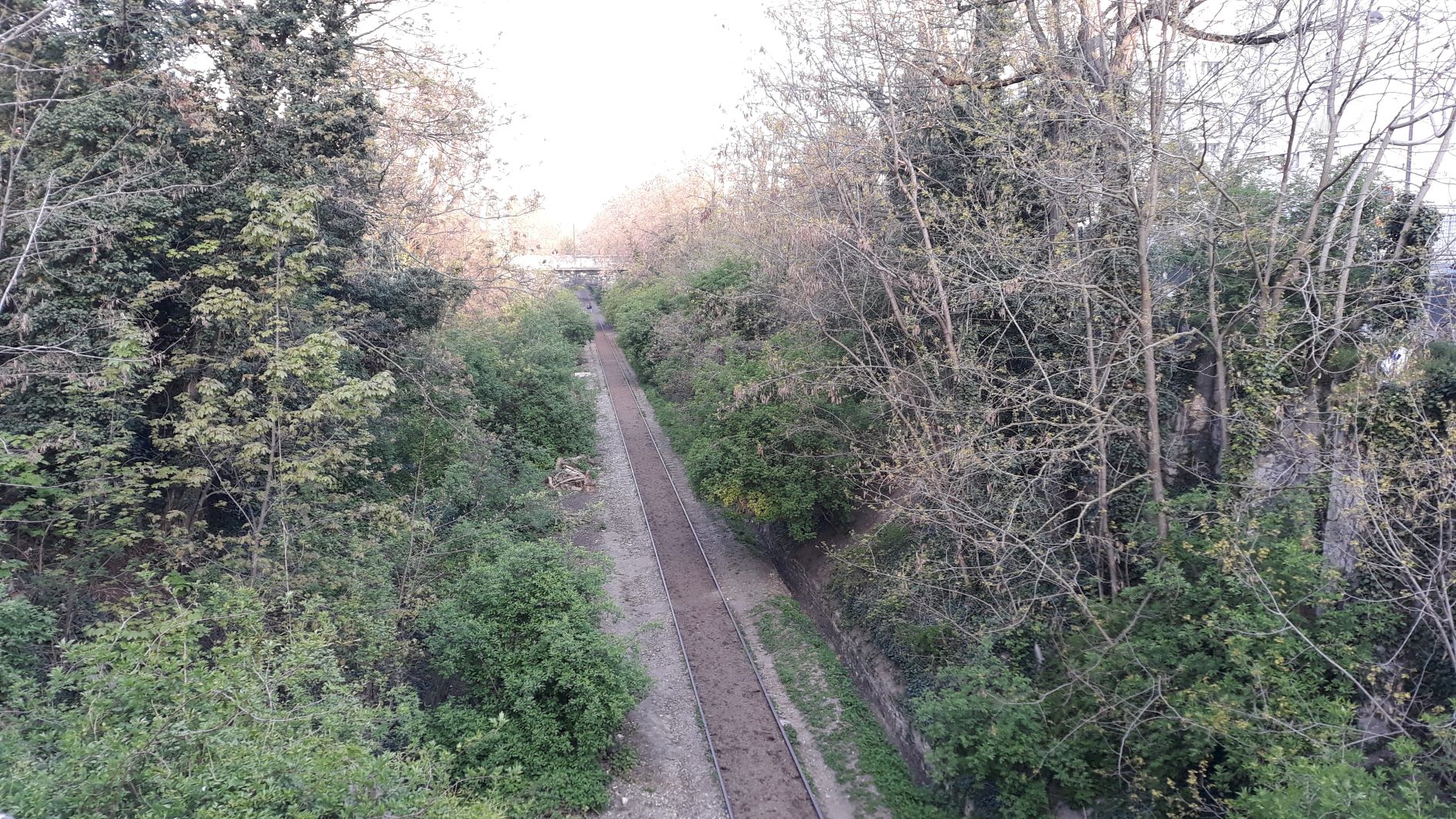 Une jungle en plein Paris ? Non, toujours la petite ceinture, photographiée à travers le grillage de la rue Giordano Bruno que nous sommes en train de remonter.