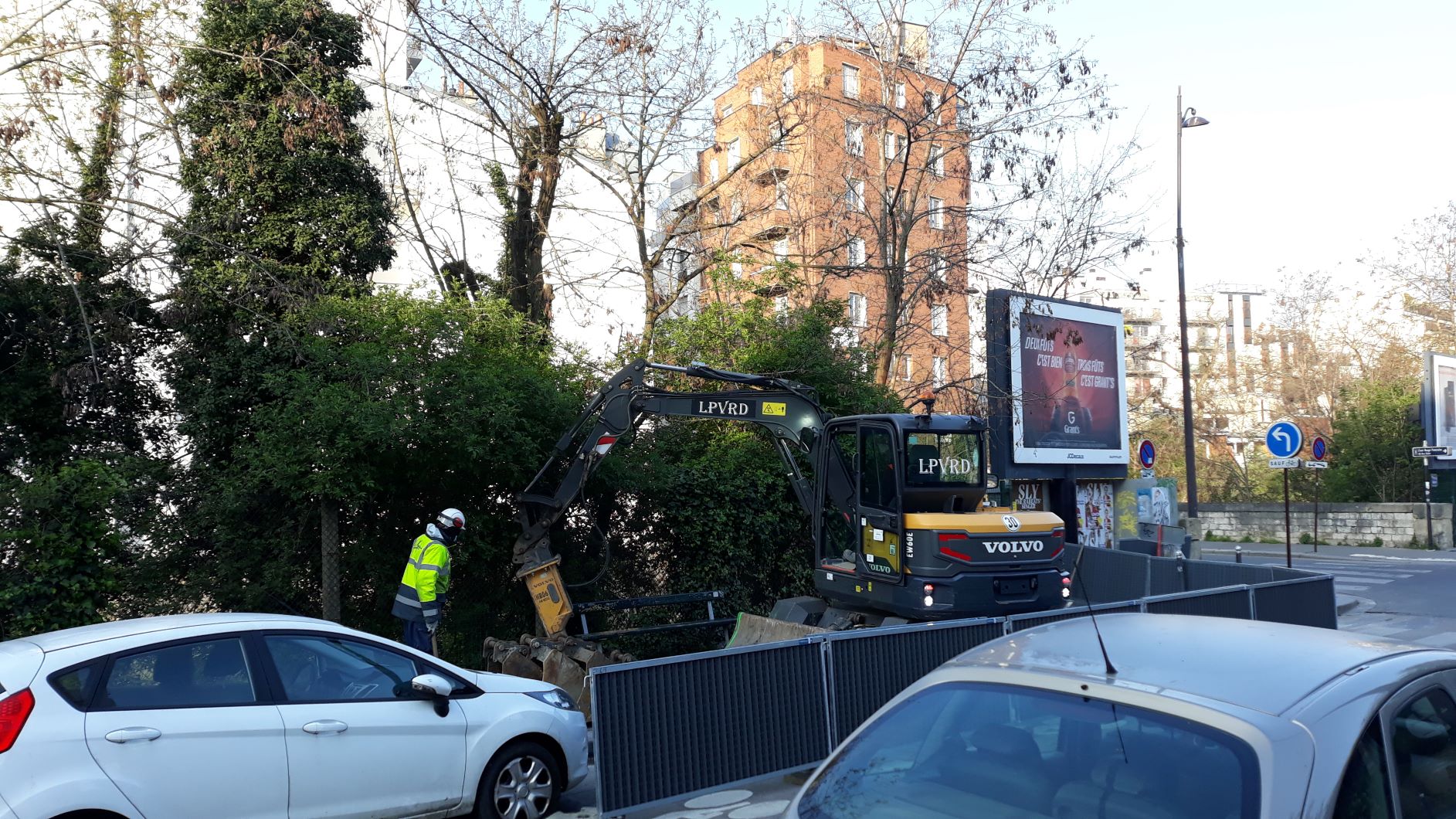 Un peu plus loin, des ouvriers sont au travail, qui « décroutent » le trottoir en vue de sa restauration.