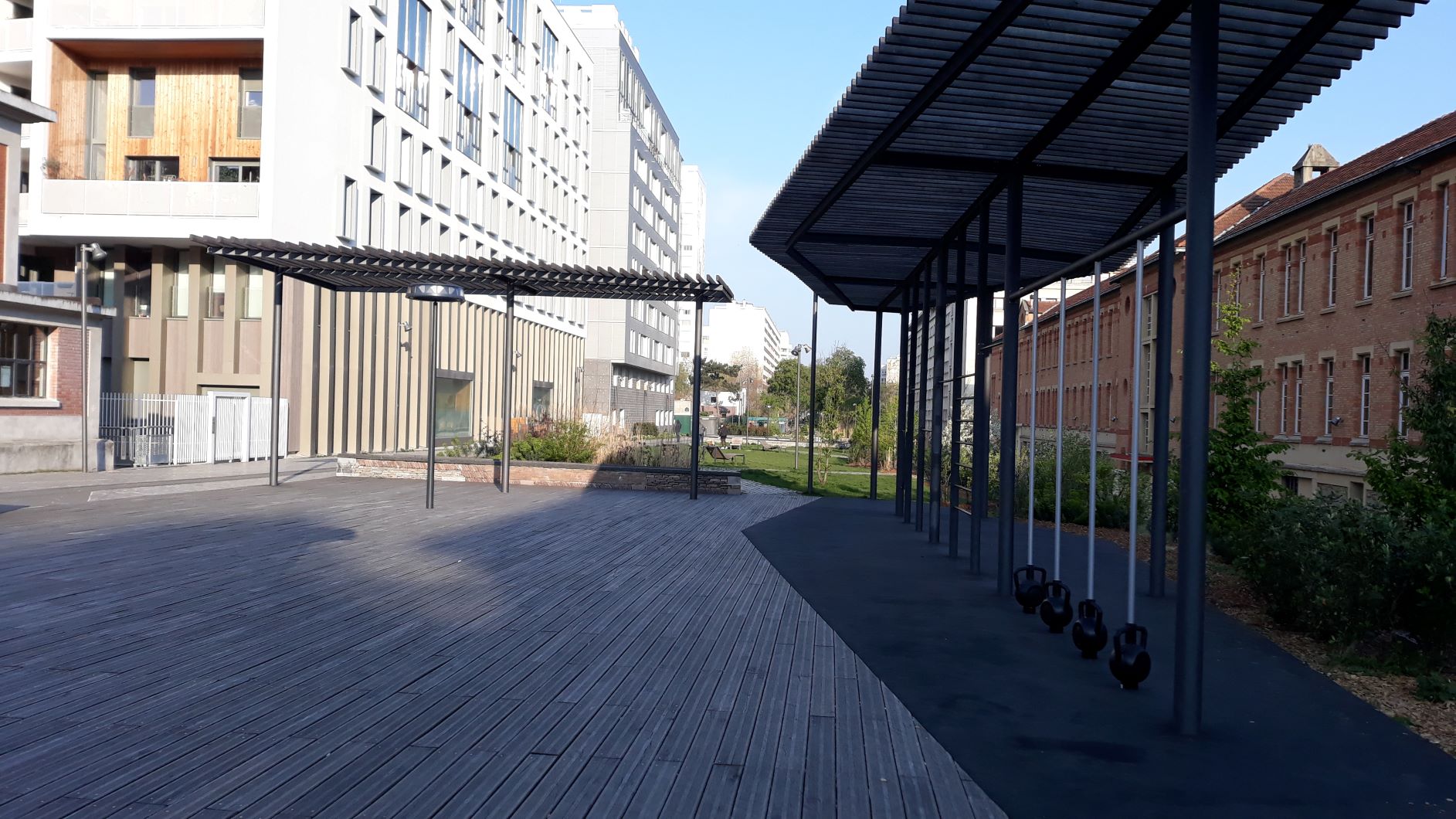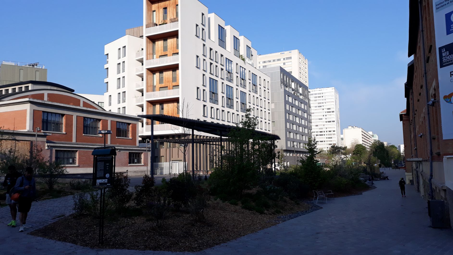 Là, à gauche, un bâtiment industriel d’une autre époque (en fait, il s’agit de l’ancien incinérateur de l’hôpital Broussais), qui nous rappelle qu’avant d’être une ville de logements et de bureaux, Paris était une ville d’ateliers et d’usines.