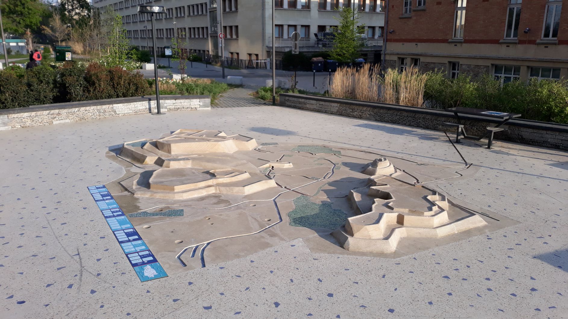 Nous reprenons notre marche au milieu des massifs et des pelouses arborées… mais au loin, trois silhouettes semblent nous barrer le passage… Aïe, aïe, aïe… qu’est-ce que cela ?… nous le saurons dans la troisième partie de notre marche.