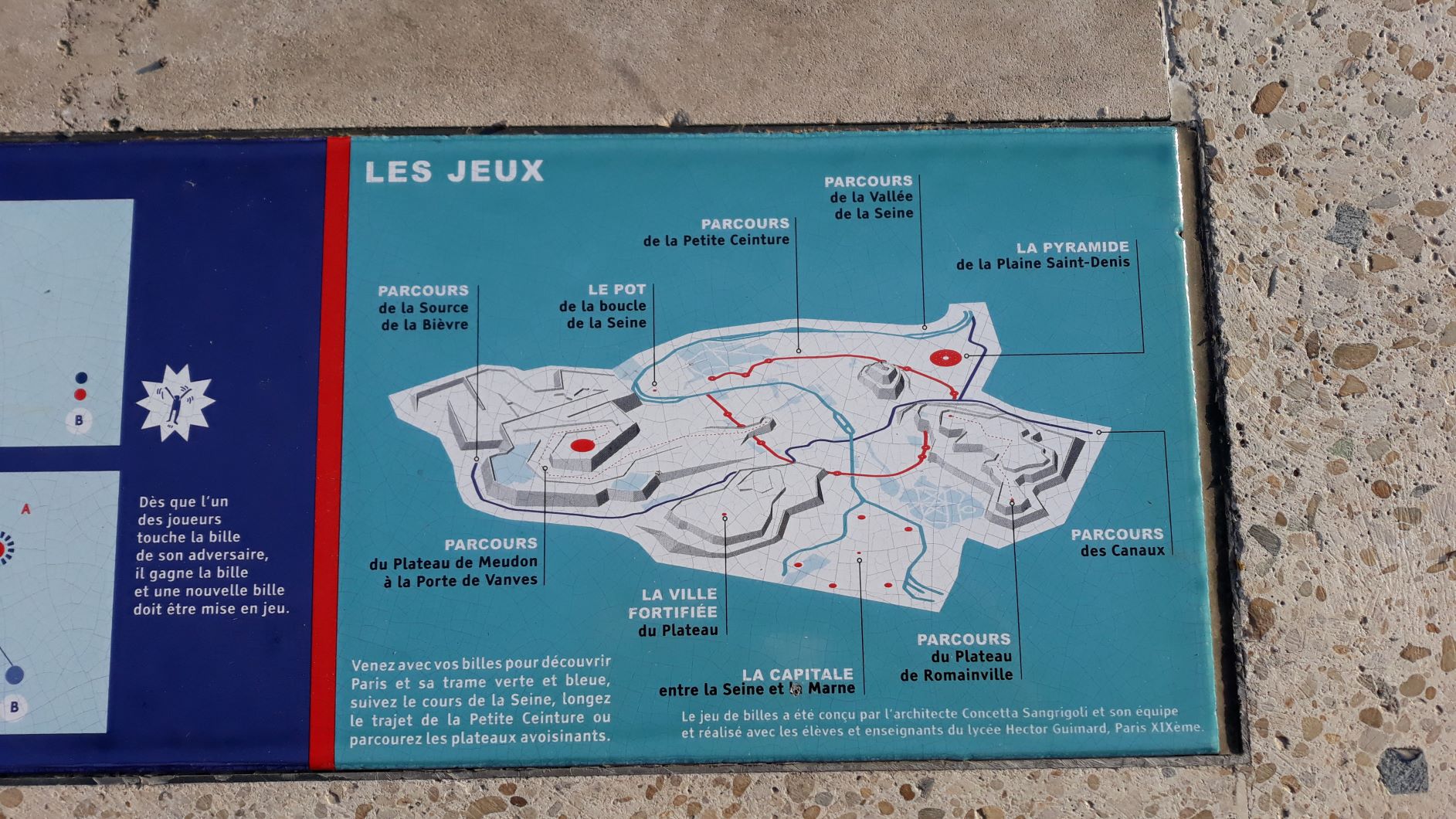 Un jeu de billes ! Magnifique… mais je n’ai jamais vu d’enfants y jouant aux billes, ce n’est plus à la mode. Mais ne nous inquiétons pas, leur imagination est telle qu’ici, c’est la face cachée de la lune… ou bien encore un champ de bataille, à moins que cela ne soit juste un endroit pour courir, bondir et oublier l’école !
