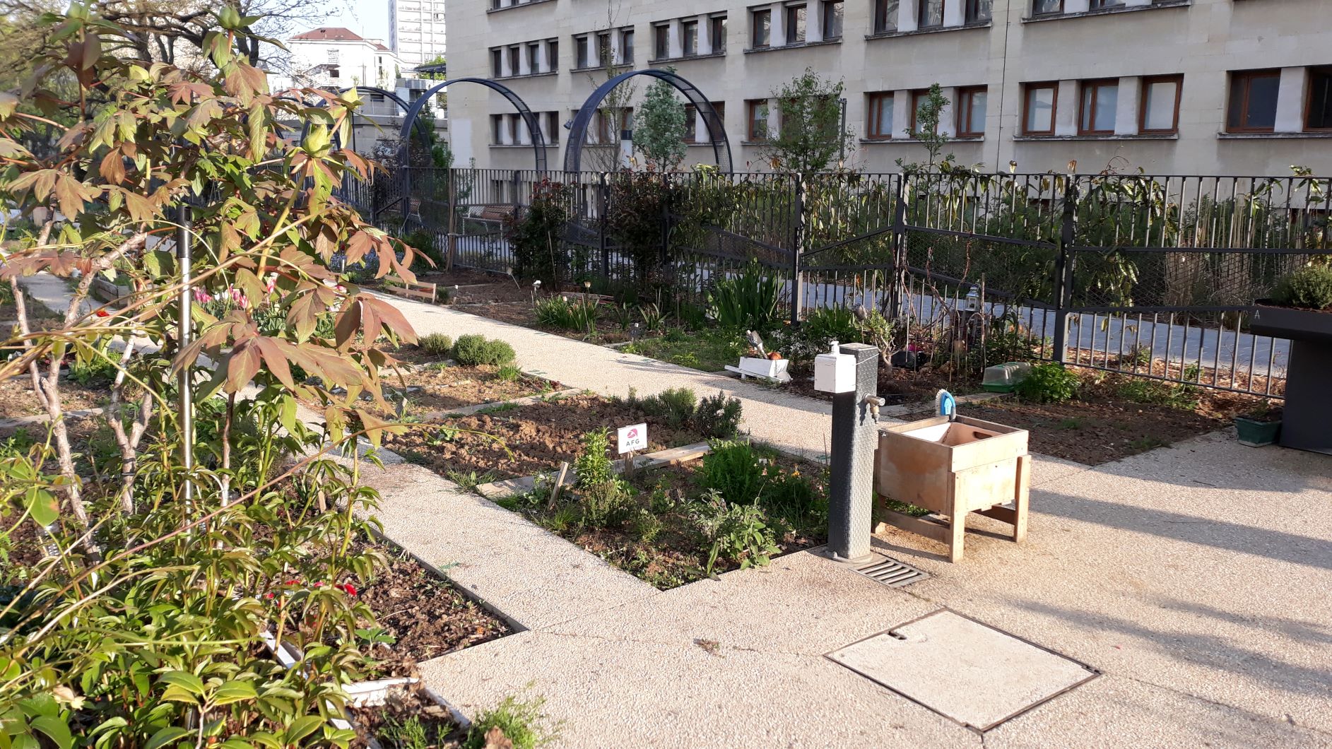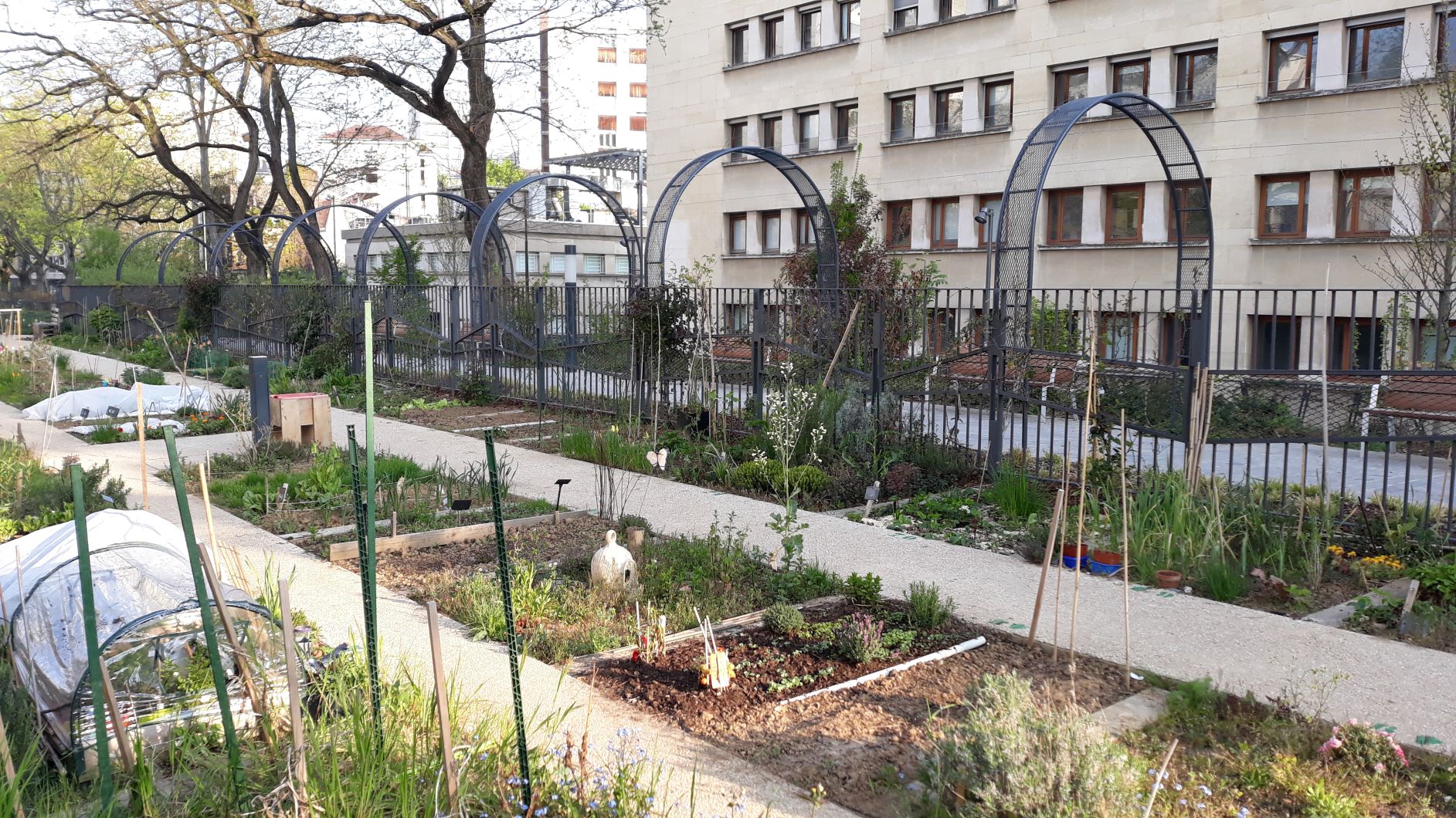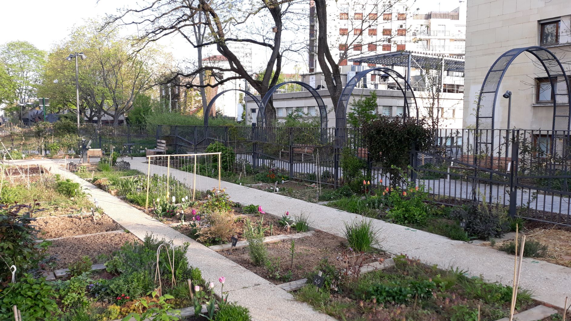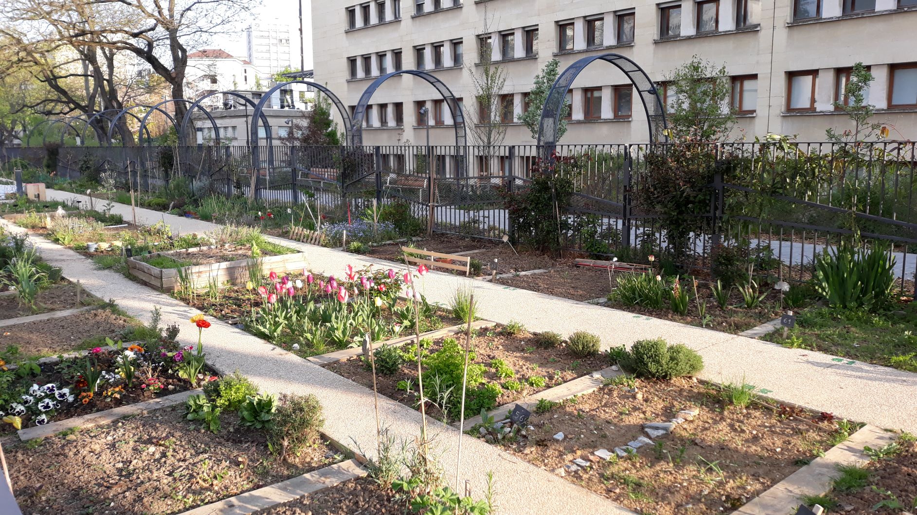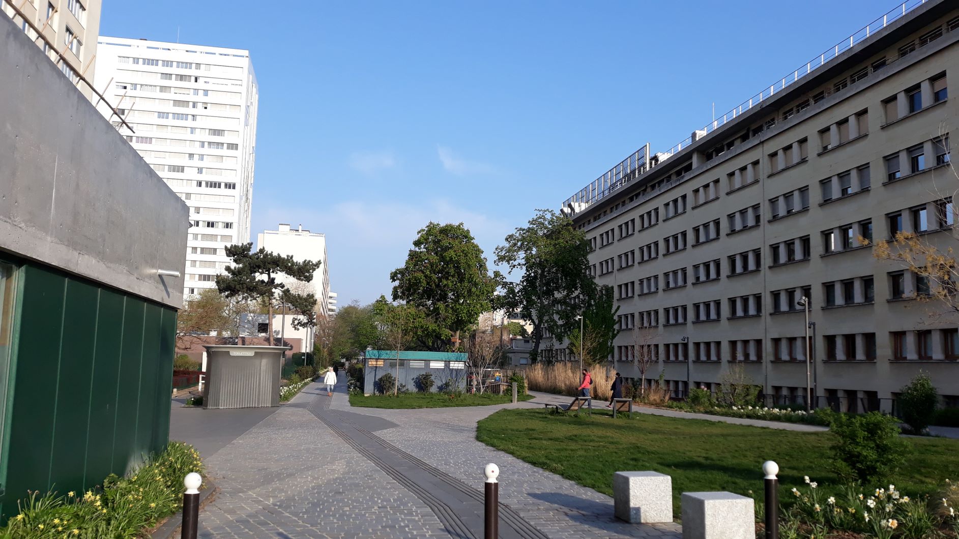 …avec ses jardins aménagés au-dessus de la petite ceinture afin de donner un peu de vert et d’espace aux habitant des grands ensembles qui s’élancent vers le ciel bleu.