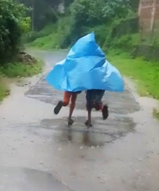 Elles courraient toutes les deux protégées par une bâche de fortune.